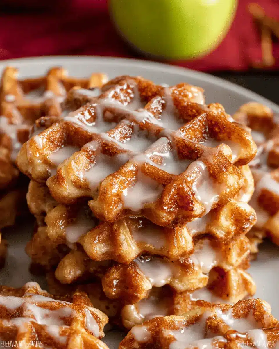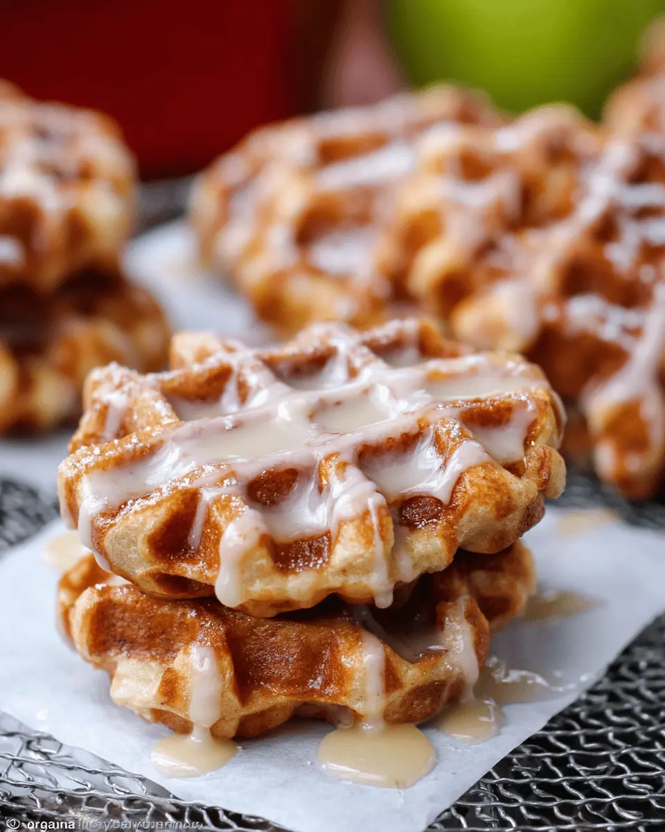 What makes these waffle donuts truly special, apart from their unique texture that combines the best of donuts and waffles, is the warm, spiced flavor of fresh apples and the sweet glaze that tops them. Imagine enjoying a few of these with your favorite coffee or tea — they pair perfectly for a well-deserved break.