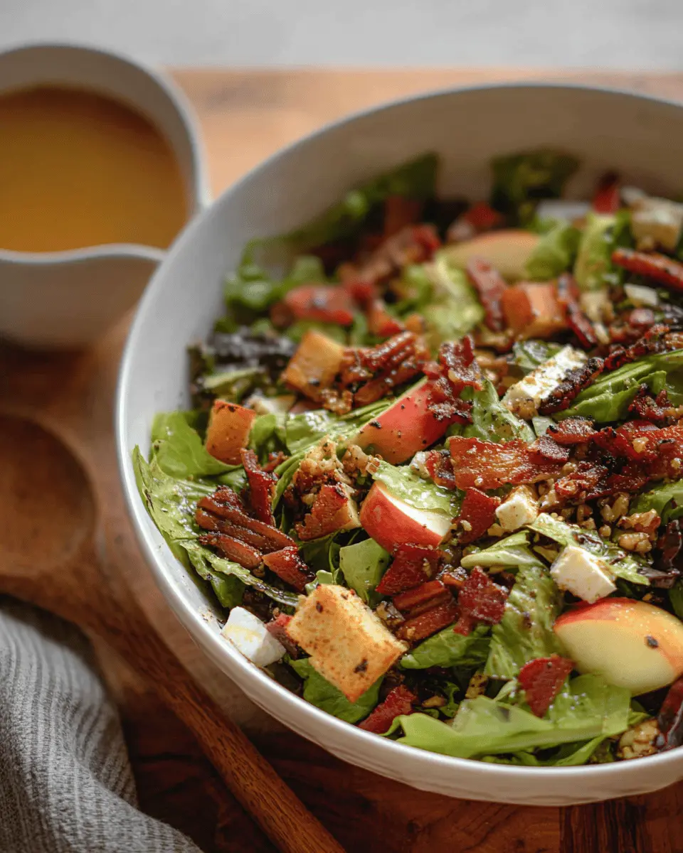 To make your life easier on those busy weeknights, prep your Autumn Chopped Salad in advance! Wash and chop the Romaine lettuce, roast the pecans, and cook the Turkey Bacon ahead of time. You can even whip up the Apple Cider Vinaigrette and store it in the fridge for a few days. Just remember to slice the apples right before serving to keep them crisp and fresh. This way, you’ll have a delicious, healthy salad ready to go whenever you need it!