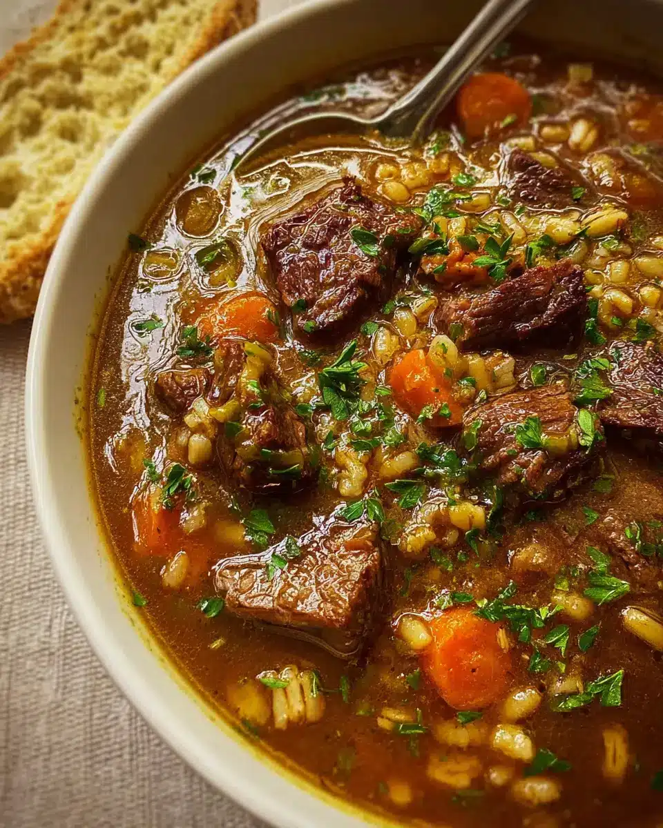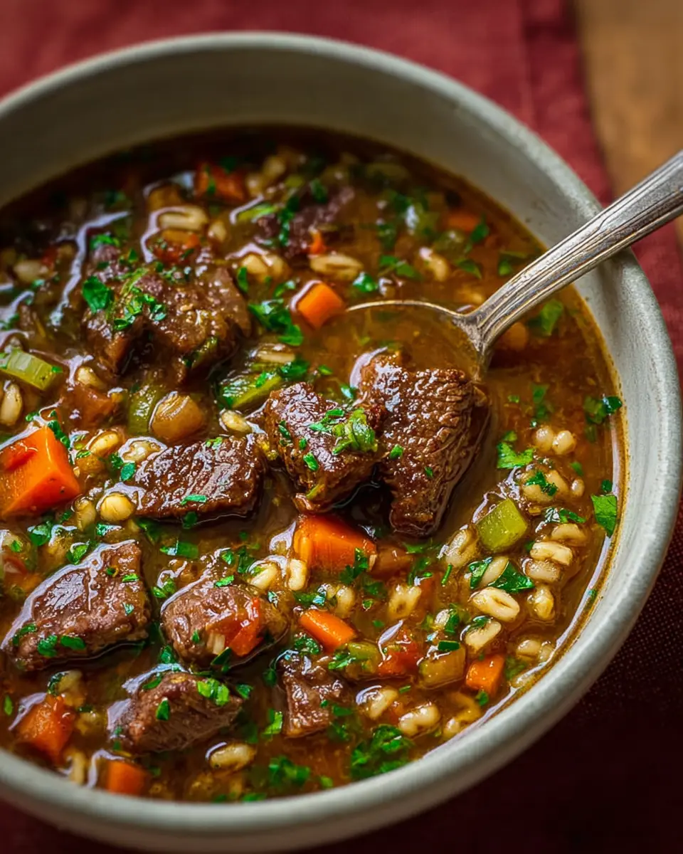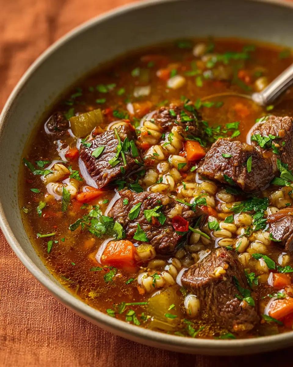 Don’t Rush Cooking: For the best texture, let the soup simmer gently. Low and slow allows the beef to become fork-tender and the barley to absorb flavors.