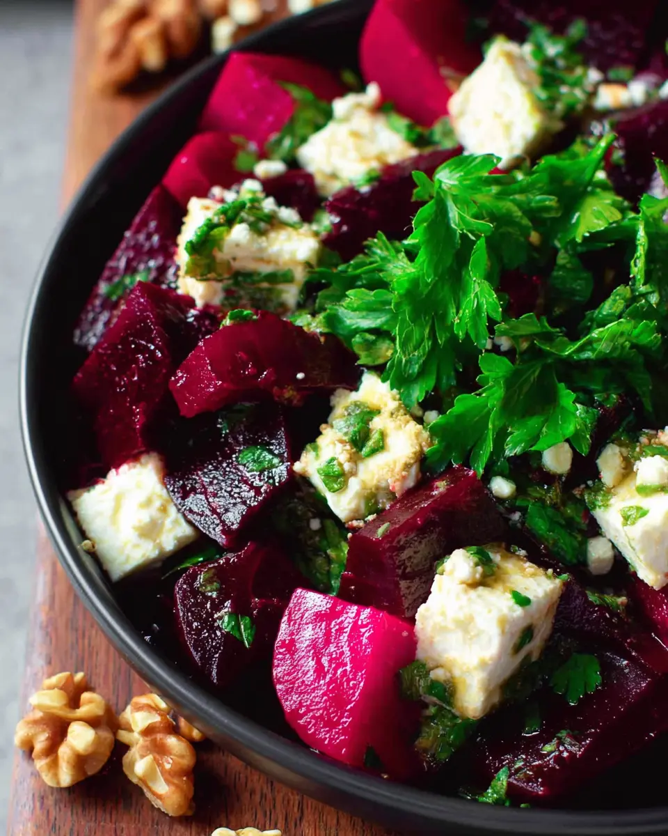 This Beetroot and Feta Cheese Salad is a delightful blend of flavors and textures that brighten up any table. It's not just a feast for the eyes but also a nutritious choice packed with vitamins. Perfect for a light lunch or as a side dish, give it a try today!