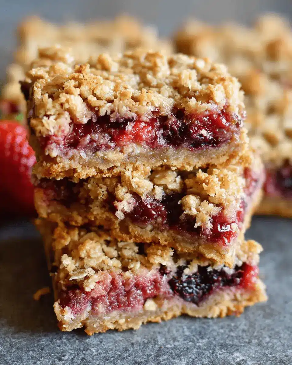 Unleash your creativity by transforming your berry oat bars into delicious parfaits. Layer crumbled bars with yogurt and mixed berries in a mason jar for a grab-and-go treat! Alternatively, consider serving these bars at your next brunch or picnic, cutting them into bite-sized squares for easy sharing. These bars also freeze beautifully—simply store them in an airtight container for a quick snack or breakfast on a busy day. The possibilities are endless, so get imaginative and enjoy this wholesome treat in multiple ways!