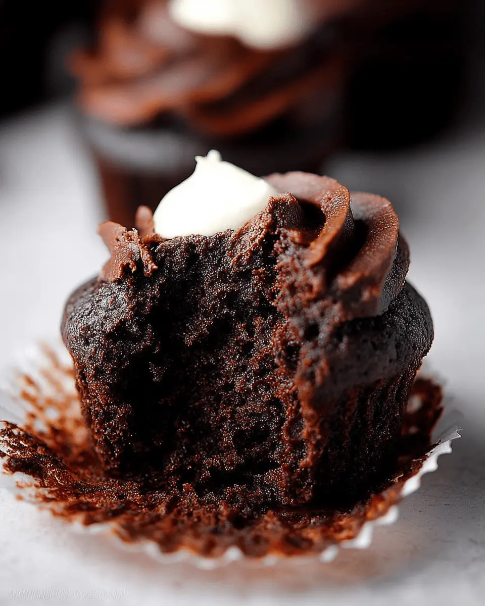 The richness of these best chocolate cupcakes comes from a combination of high-quality cocoa powder and the addition of boiling water, which intensifies the chocolate flavor. Using buttermilk adds moisture and a slight tang, while the espresso powder enhances the overall chocolate experience without adding a coffee flavor. Together, these ingredients create a sumptuous and moist cupcake that is sure to satisfy any chocolate lover's craving.