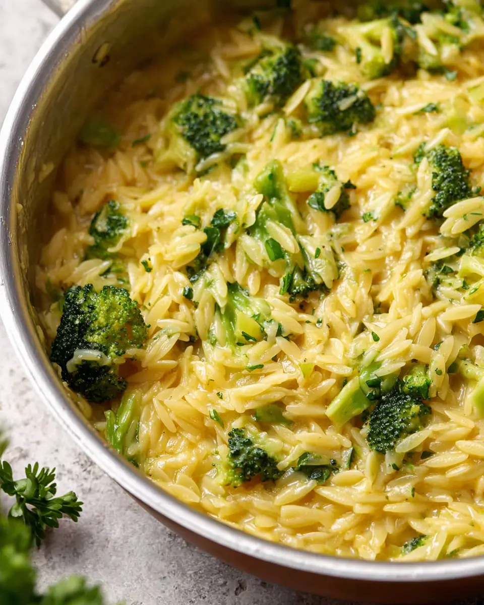 Serve your delicious broccoli cheddar orzo hot, and watch as everyone at the table digs in with delight! Enjoy this cozy dish that’s perfect for any weeknight dinner.