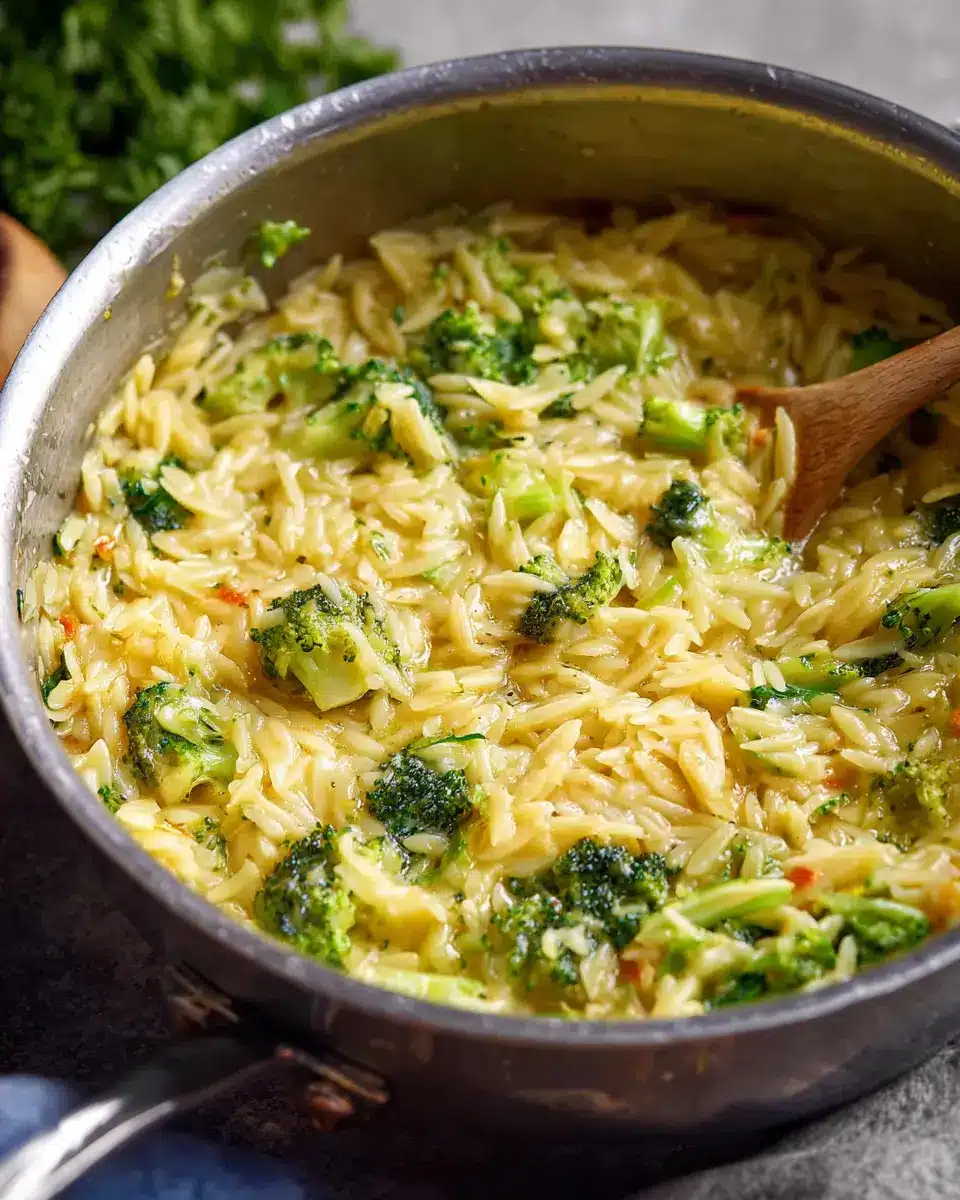 The beauty of broccoli cheddar orzo lies in its simplicity. It all comes together in a single pot, which means less time spent cleaning up and more time to unwind after a long day. With its creamy texture, sharp cheddar, and vibrant bits of broccoli, this meal delights the senses while ensuring you get your daily dose of veggies.