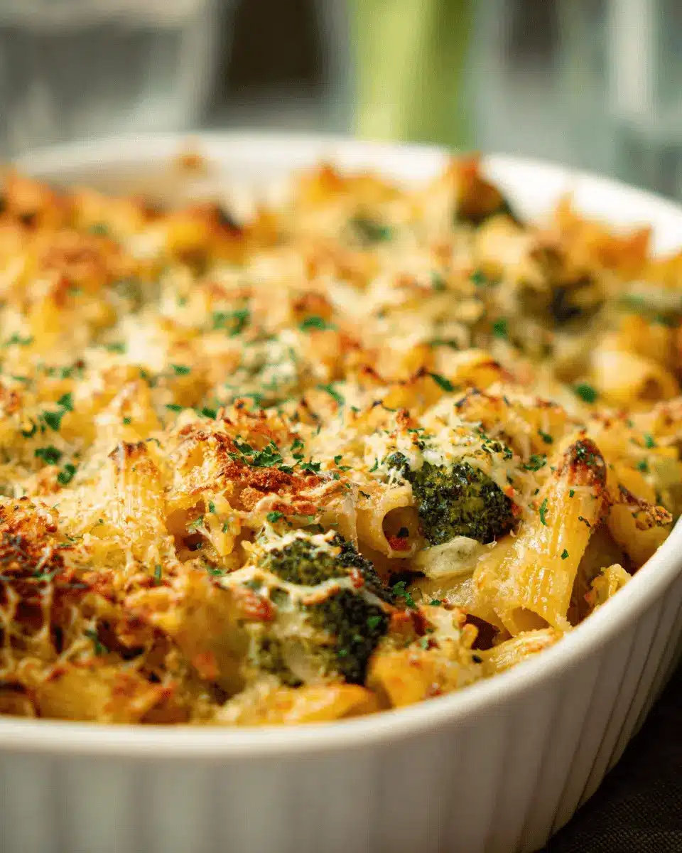 To make your broccoli pasta bake visually appealing, use a wide, shallow bowl to showcase its layers. Garnish with a sprinkle of freshly chopped parsley for a pop of color and an inviting aroma. Drizzling a touch of olive oil over the top not only enhances flavor but also adds a glossy finish. Serve with a wedge of lemon on the side to brighten the dish, making it feel restaurant-quality from the comfort of your home.