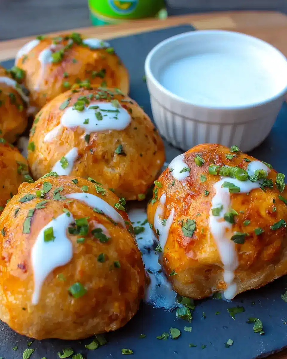 Want to crank up the heat? Substitute your favorite spicy Buffalo sauce with an extra-hot version, adding jalapeños for a burst of flavor. You can even include turkey bacon bits for a smoky touch that pairs perfectly with the fiery chicken. Trust me, these spicy Buffalo chicken bombs will ignite your taste buds!