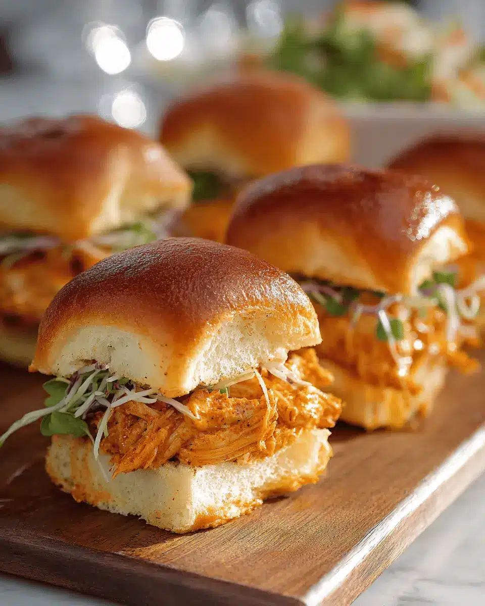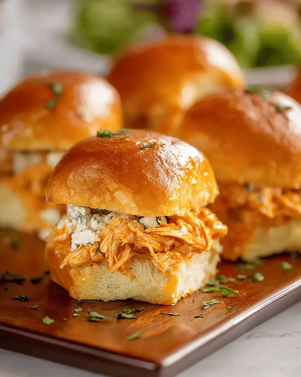 In summary, Buffalo Chicken Sliders are the perfect addition to your next gathering, combining the zesty flavors of buffalo chicken with the convenience of sliders. They’re easy to prepare and sure to please any crowd. Try them with homemade coleslaw for an extra crunch—your guests will be raving!