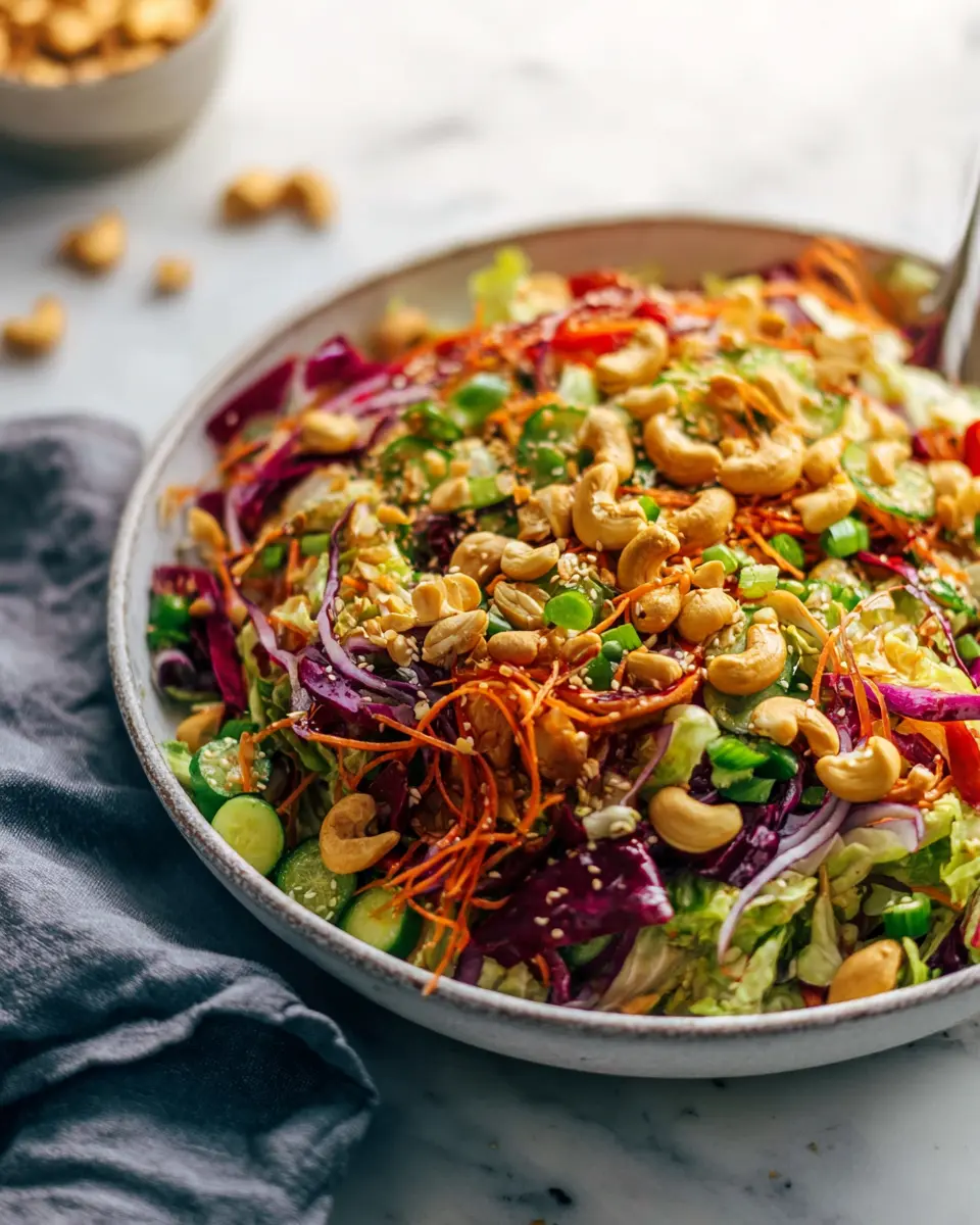 In summary, the cashew crunch salad is a refreshing blend of flavors and textures that makes for a perfect meal any time of year. With its easy preparation and delightful sesame dressing, it's a crowd-pleaser. Try customizing it with your favorite proteins to make it uniquely yours!