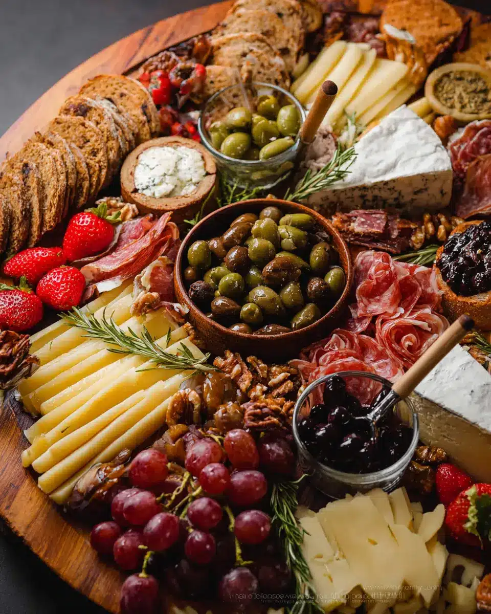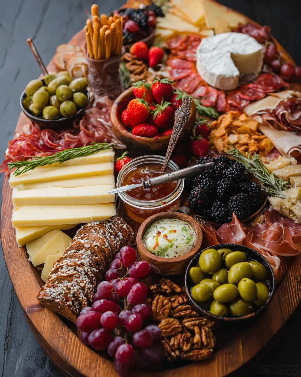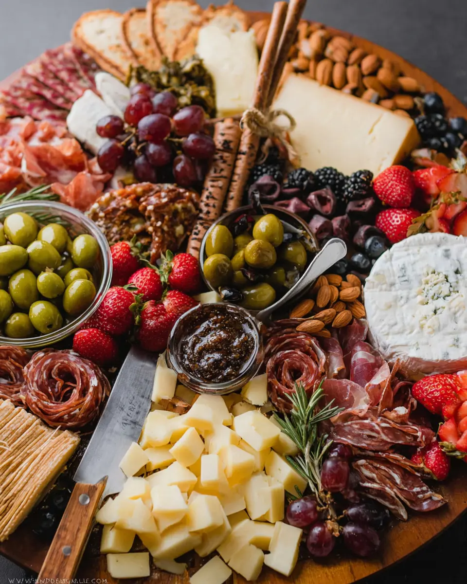 Start by selecting a variety of cheeses, ensuring a mix of textures and flavors—creamy brie, nutty manchego, and tangy cheddar work beautifully together. Place the cheeses around the board, aiming for balance and symmetry. Consider pre-slicing harder cheeses or removing wedges from the brie; this invites guests to dig in without hesitation. The key is to create visual interest—don’t be afraid to let the cheeses overlap slightly. You can learn more about cheese pairings here.