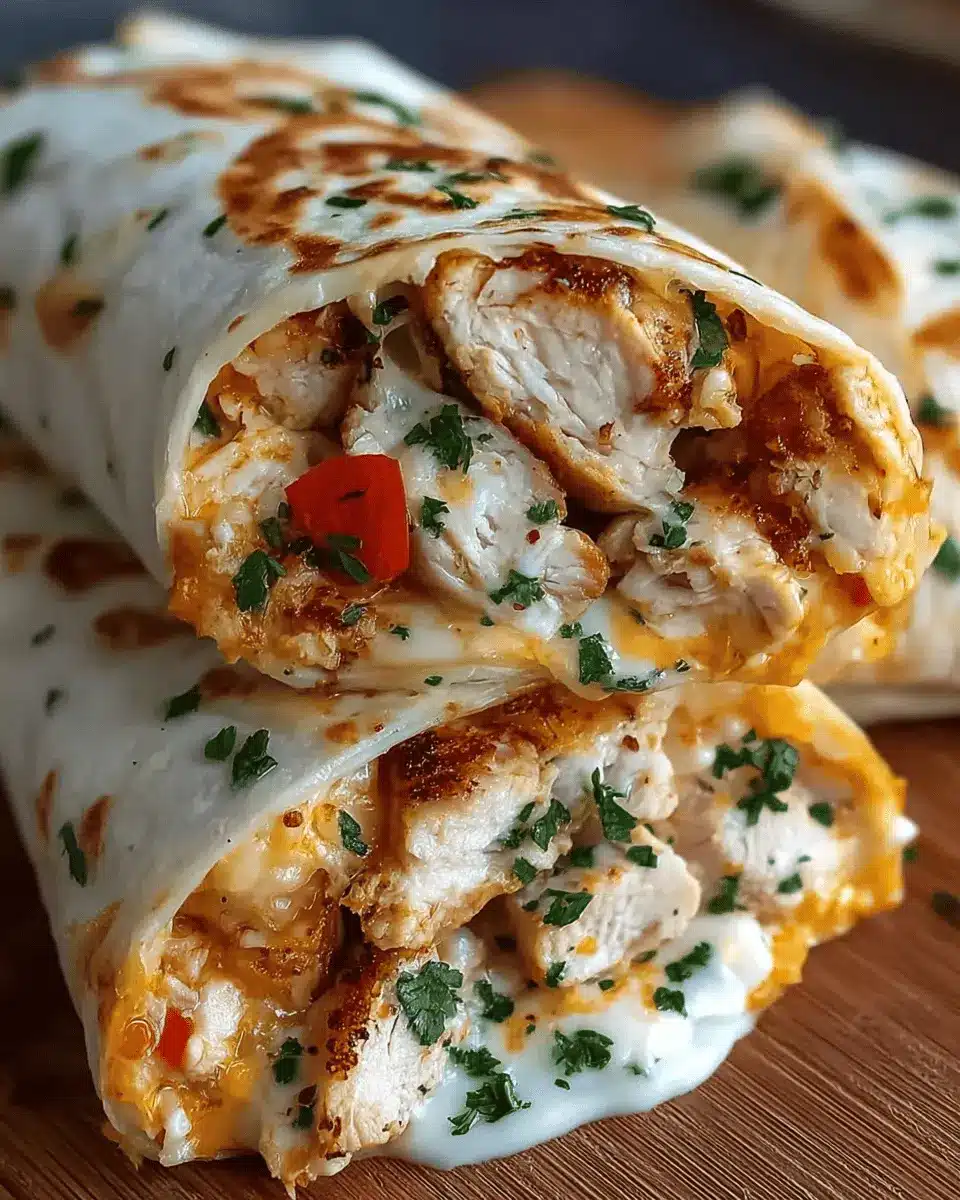 In summary, these cheesy garlic chicken wraps are not only quick to prepare but also pack a delightful punch of flavors that will please anyone at the table. Perfect for busy weeknights or a tasty lunch option, they’re sure to become a go-to recipe in your home. Enjoy!