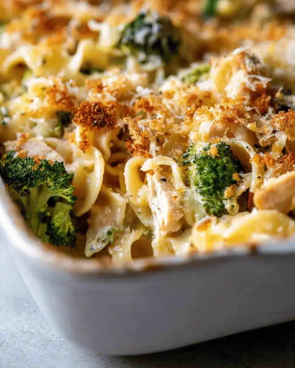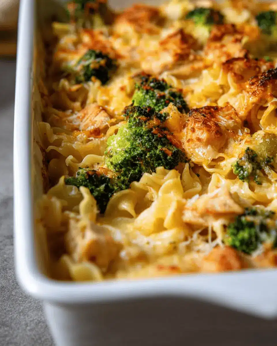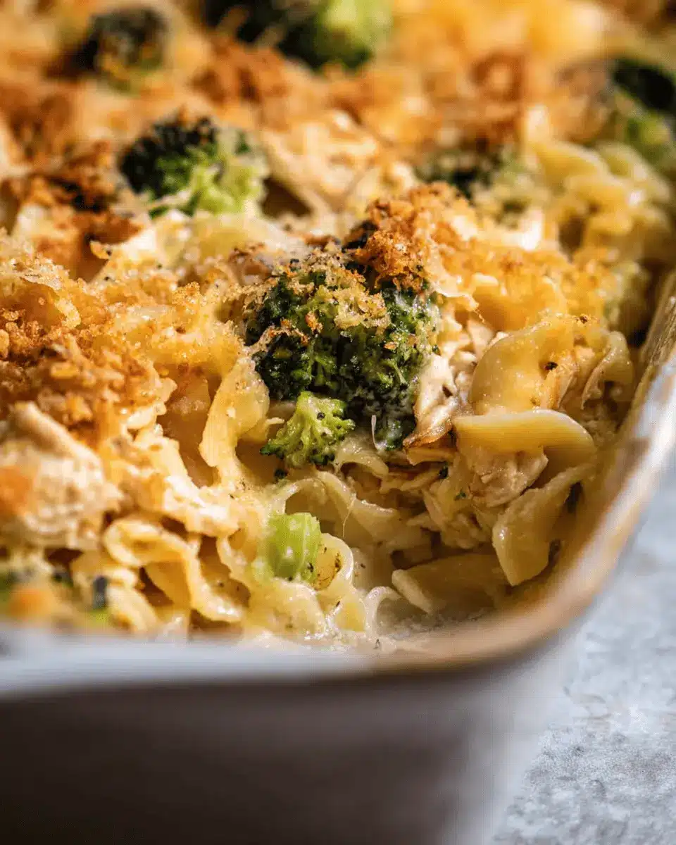 Enjoy your homemade Chicken and Broccoli Noodle Casserole, a true delight for any night of the week!