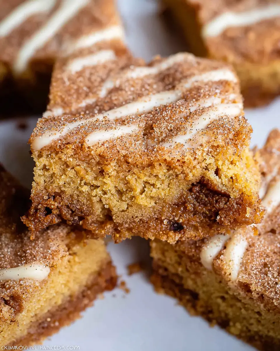 To keep your cinnamon sugar blondies fresh, store them in an airtight container at room temperature for up to five days. If you want them to last longer, you can freeze individual slices, wrapped tightly in plastic wrap, for up to three months. Just thaw them at room temperature for a delectable treat anytime!