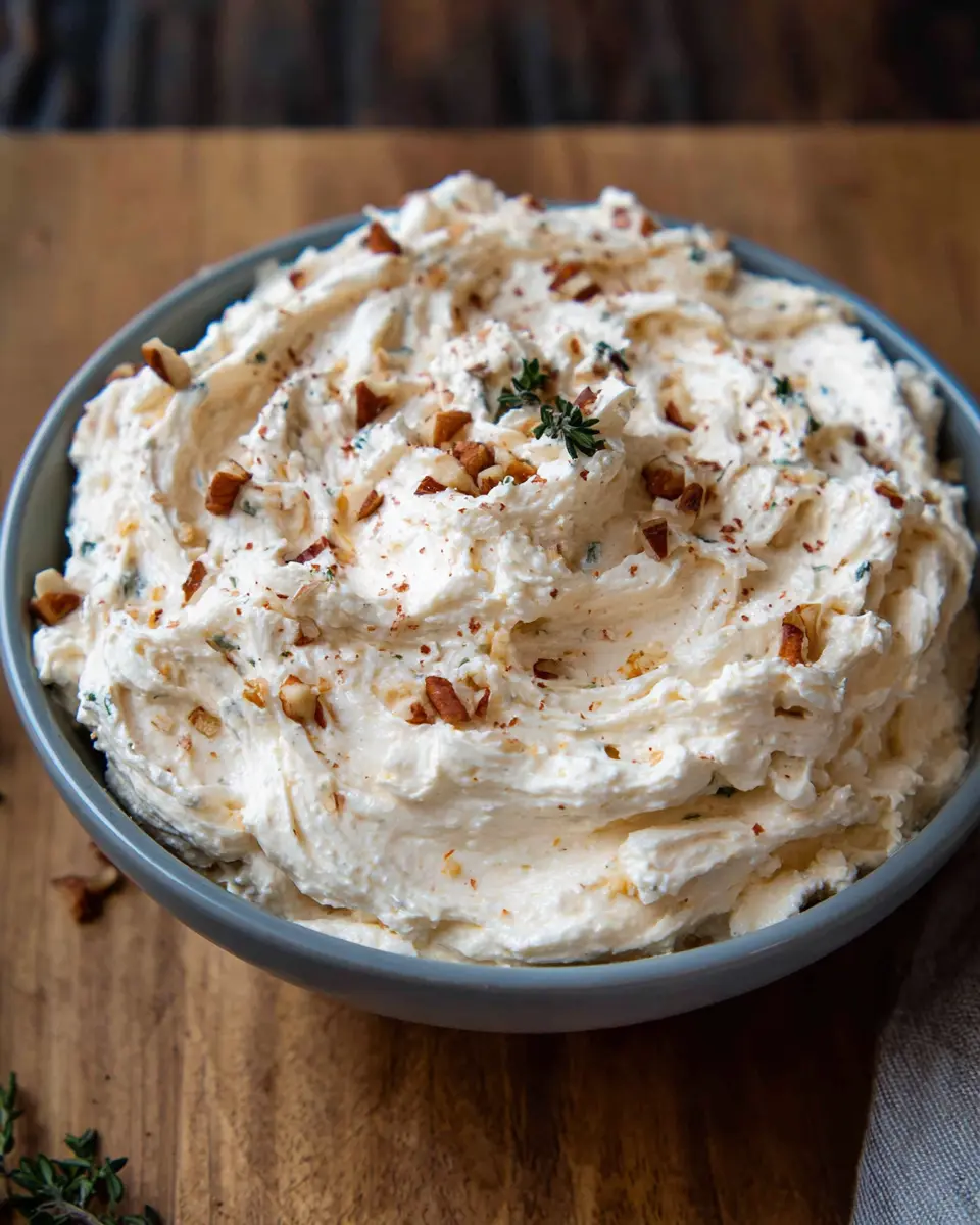 In a medium mixing bowl, it’s time to get those flavors dancing! Begin by adding the softened cream cheese to the bowl. Next, throw in the Dijon mustard, dried chives, parsley, thyme (if you’re using it), garlic powder, lemon juice, paprika, black pepper, and cayenne pepper.