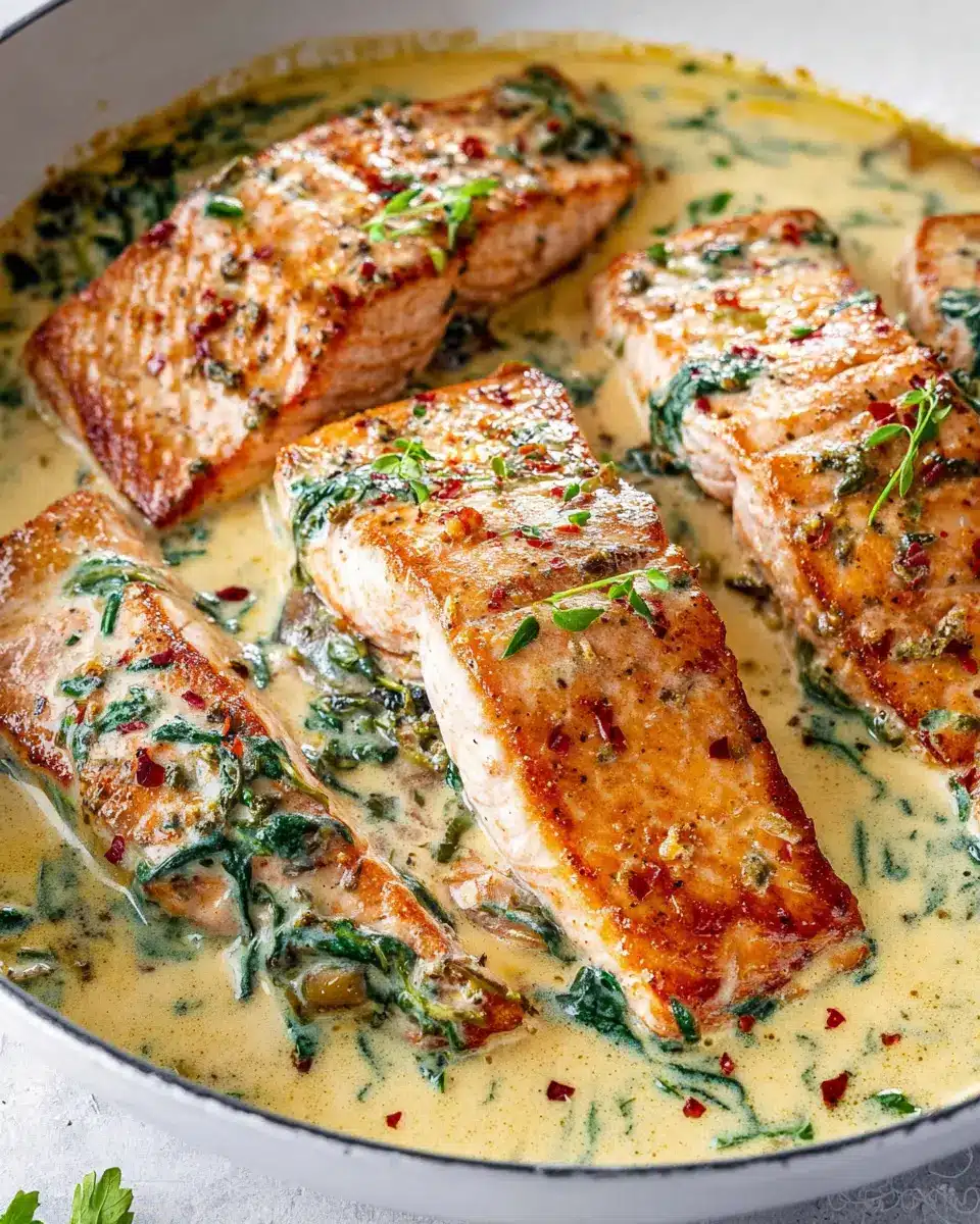 Imagine this: in just 25 minutes, you can whip up a restaurant-quality meal featuring succulent salmon fillets bathed in a creamy garlic sauce with vibrant spinach and sun-dried tomatoes. Whether you’re coming home from a long day at work or preparing a cozy dinner for friends, this recipe is incredibly versatile. Plus, it packs a nutritional punch with lean protein and veggies.