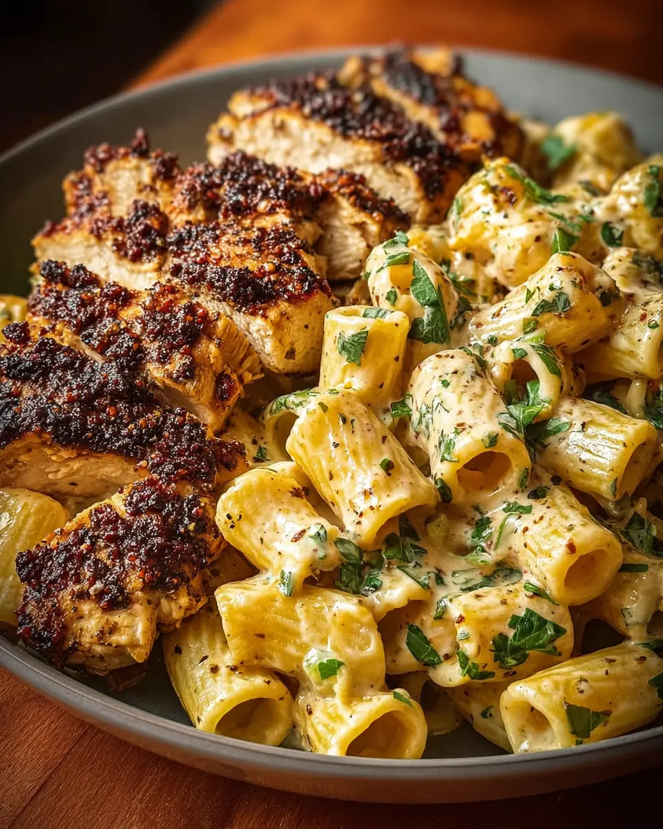 Garnish with fresh chopped parsley for a pop of color and added freshness. Serve this delightful creamy herb chicken rigatoni warm, and watch it disappear from the table in no time!