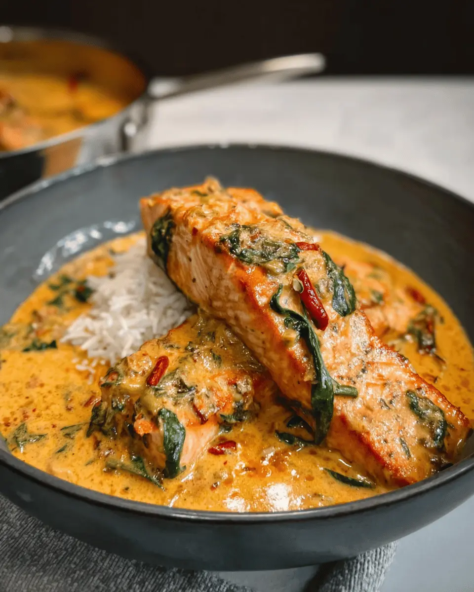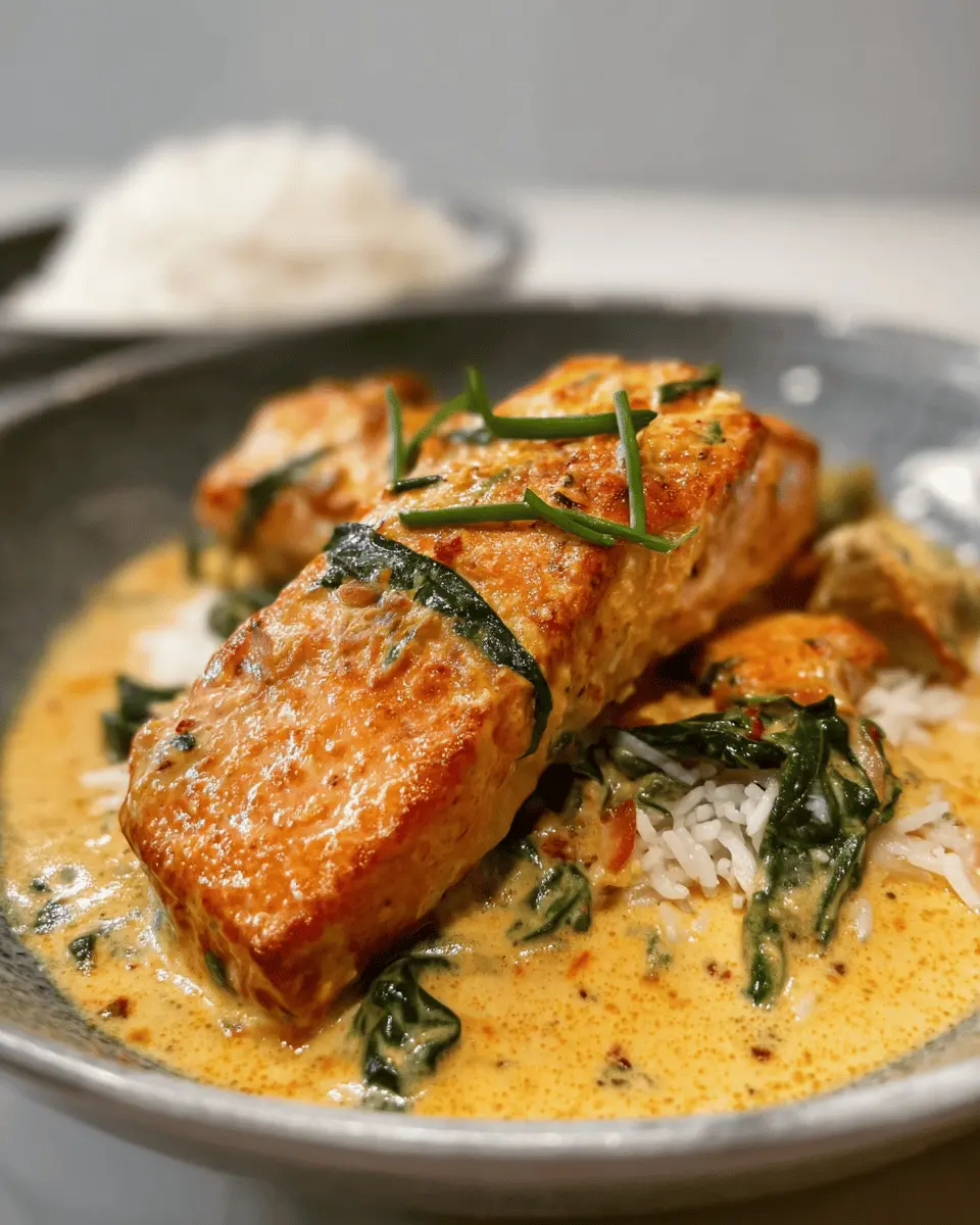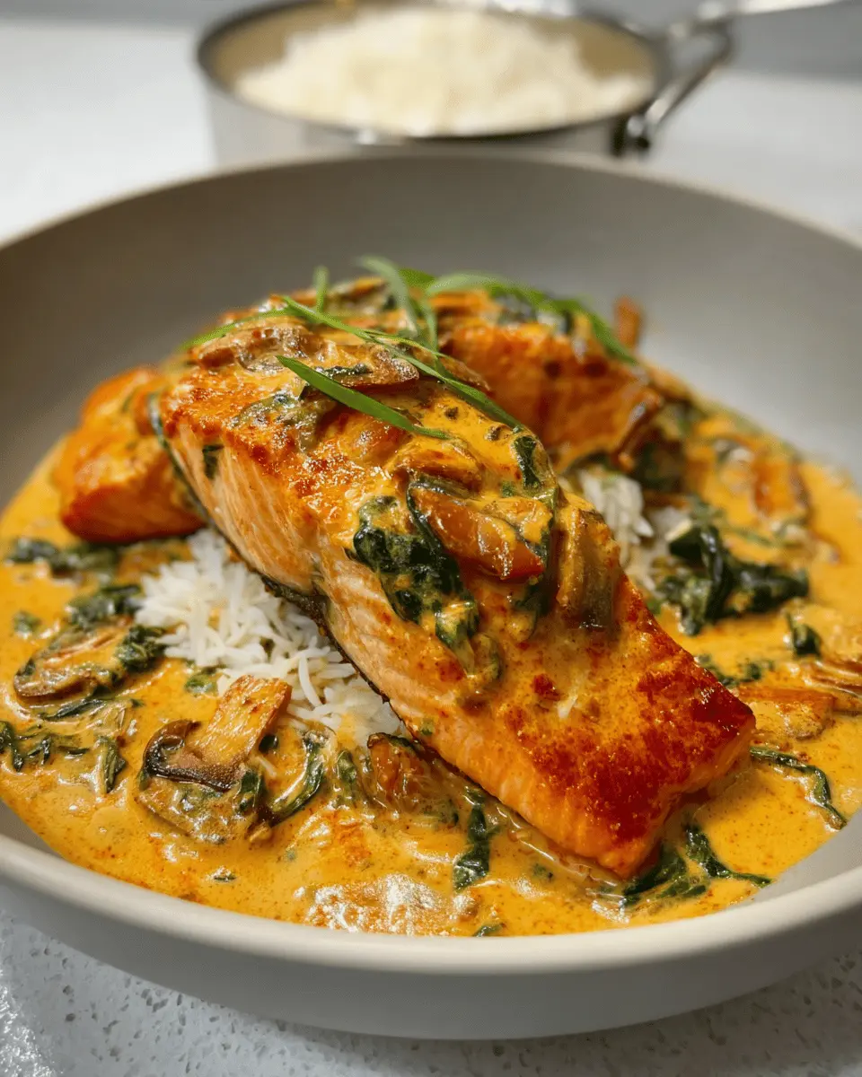 For a twist, swap the salmon for tender chicken breasts. The cooking process remains the same, allowing the chicken to absorb the rich sauce. Pair it with some roasted vegetables for a colorful, hearty meal.