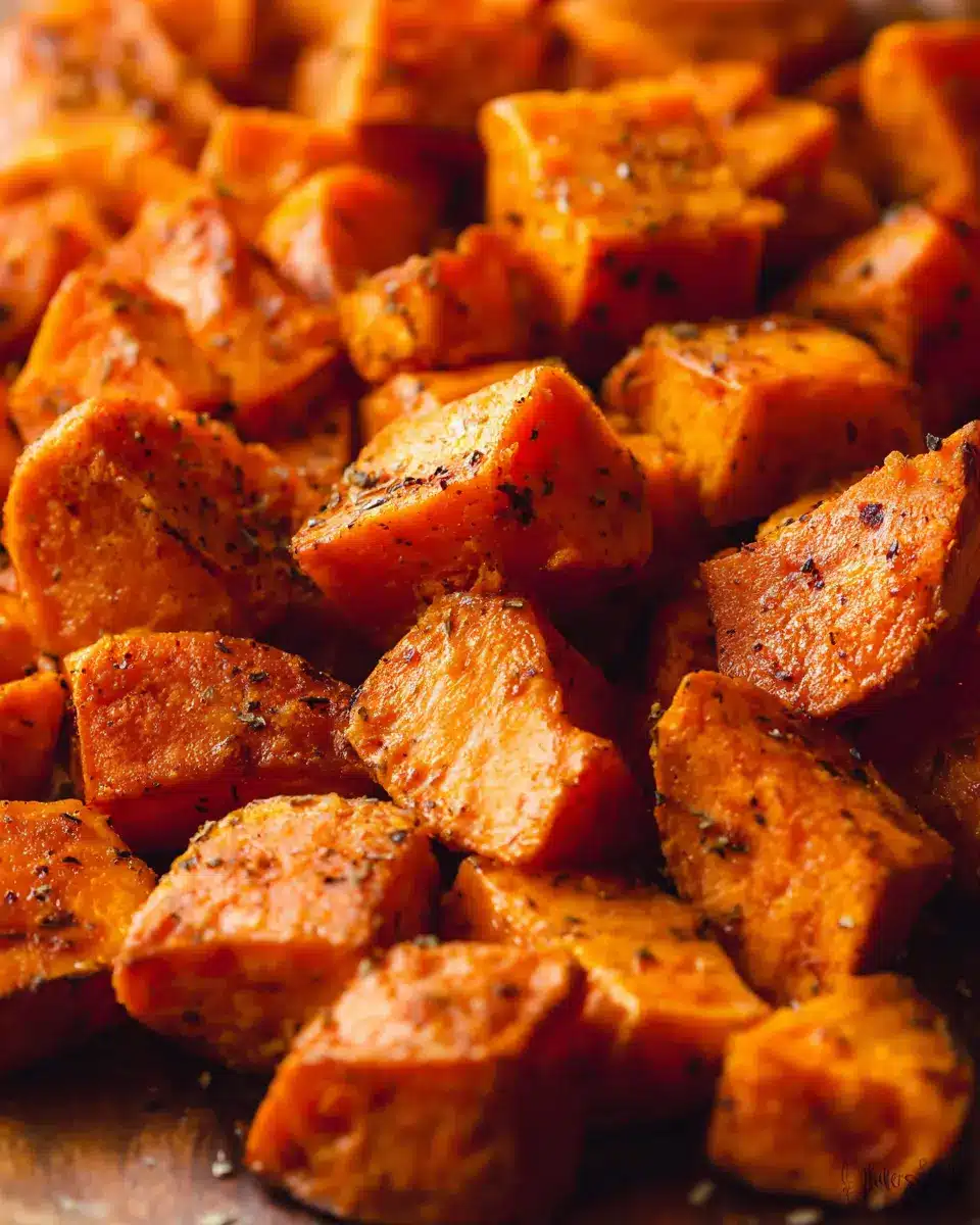 When preparing your crispy roasted sweet potatoes, cutting them into uniform ½-inch cubes is essential. This ensures that each piece cooks evenly, allowing you to achieve that perfect crispy edge while keeping the inside tender. Additionally, be sure to space the cubes out on your baking sheet. Overcrowding will cause them to steam instead of roast, which can sacrifice that delightful crunch. You want them to have plenty of room to caramelize beautifully!