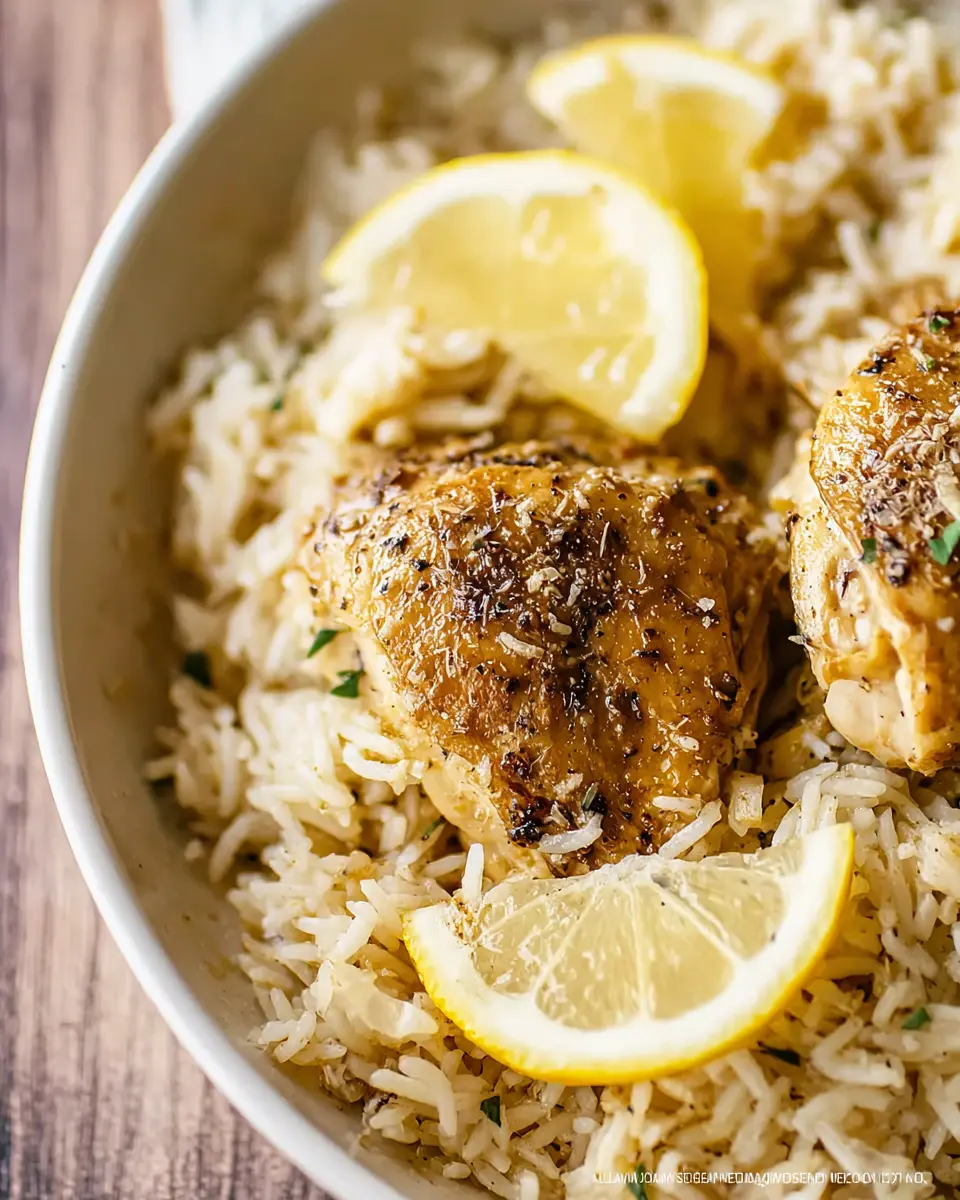 - Spoon lemon chicken and rice into bowls and garnish with fresh chopped parsley.