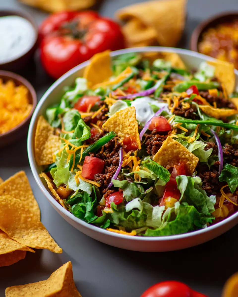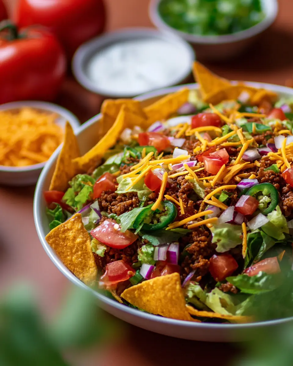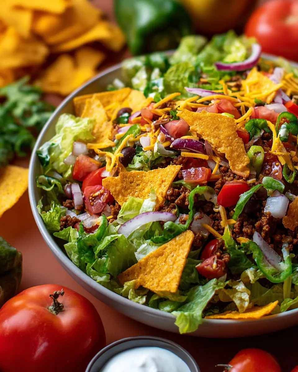 In conclusion, the Dorito Taco Salad is not just a meal; it’s an experience bursting with flavor and texture. Perfect for busy weeknights or casual gatherings, this recipe is easy to customize, ensuring everyone can enjoy their favorite toppings. Try it today and find your new favorite dish!