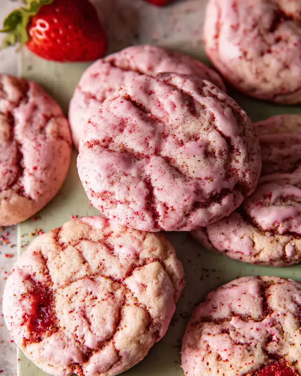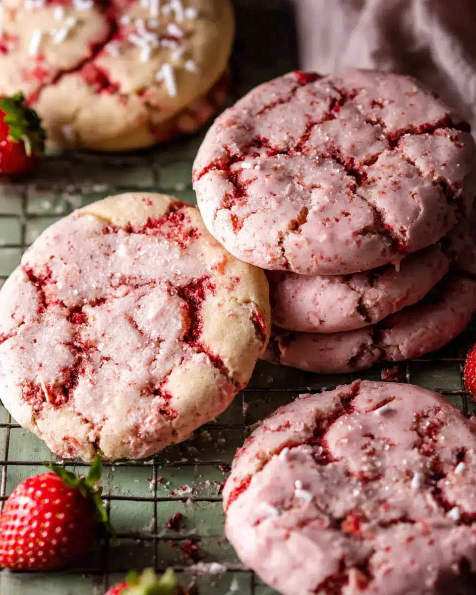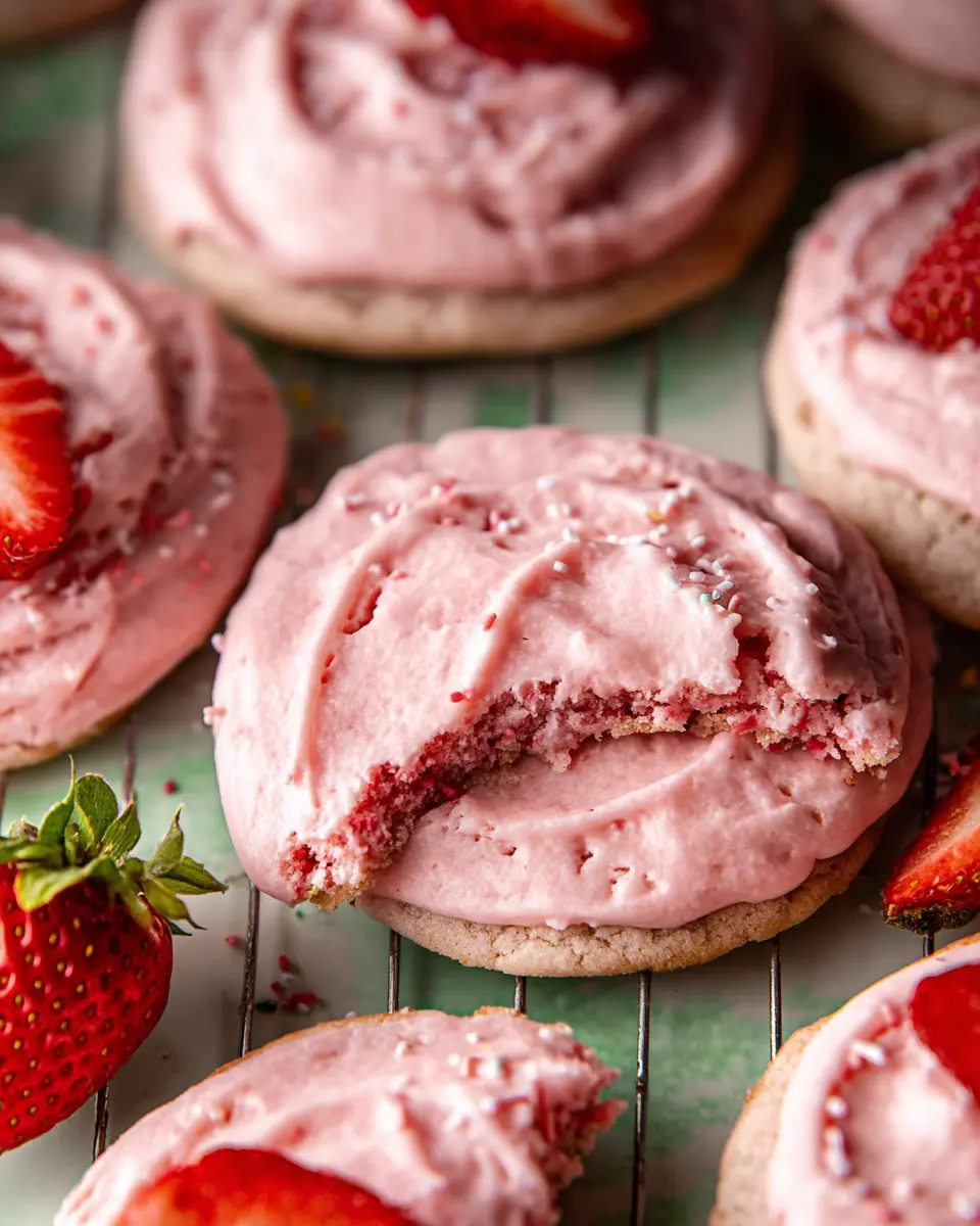 For special occasions, arrange the cookies on a decorative platter, drizzling with extra strawberry icing for a pop of color. This makes them a show-stopping dessert at parties or picnics!