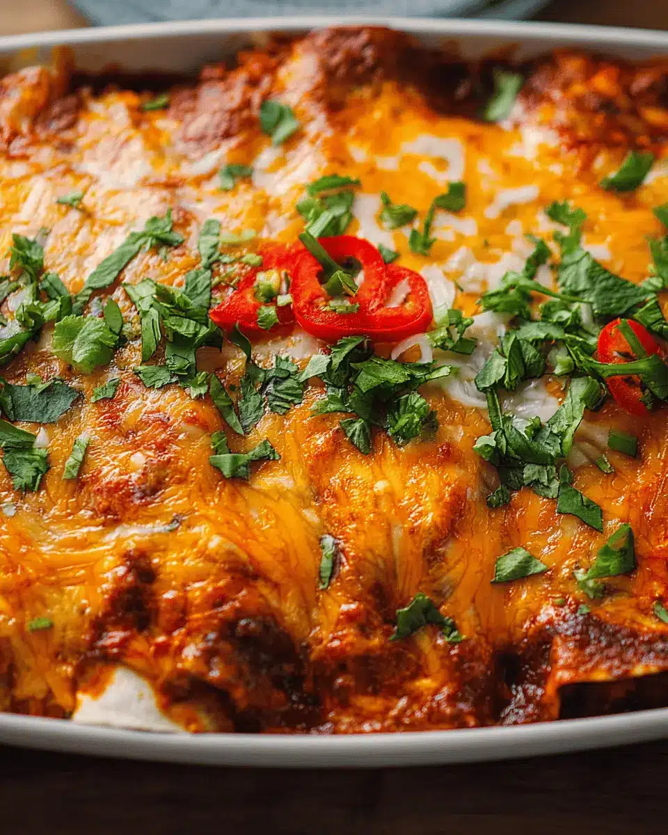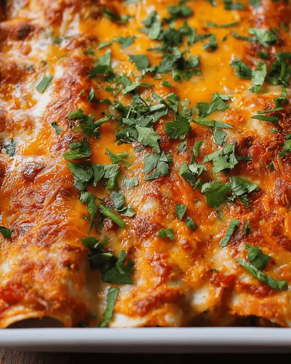 These enchiladas can easily accommodate various diets. Consider using whole wheat tortillas for added fiber or swap ground beef for a leaner protein option like turkey. They are not gluten-free but can be customized for most dietary preferences. For more information about healthy eating habits, check out resources like the Academy of Nutrition and Dietetics.