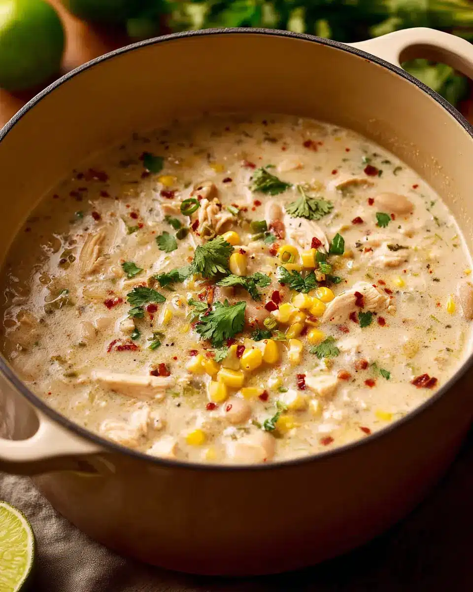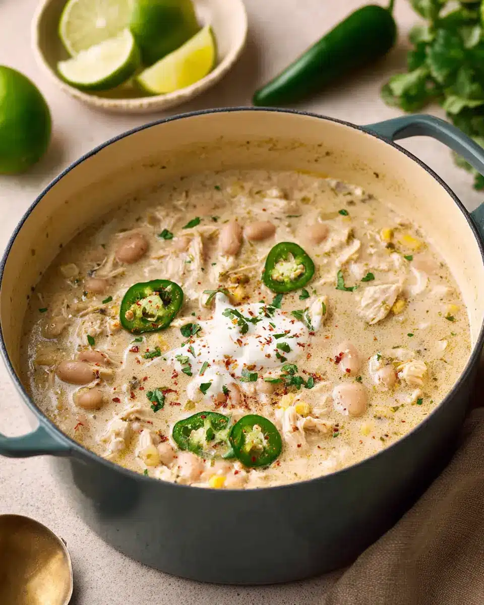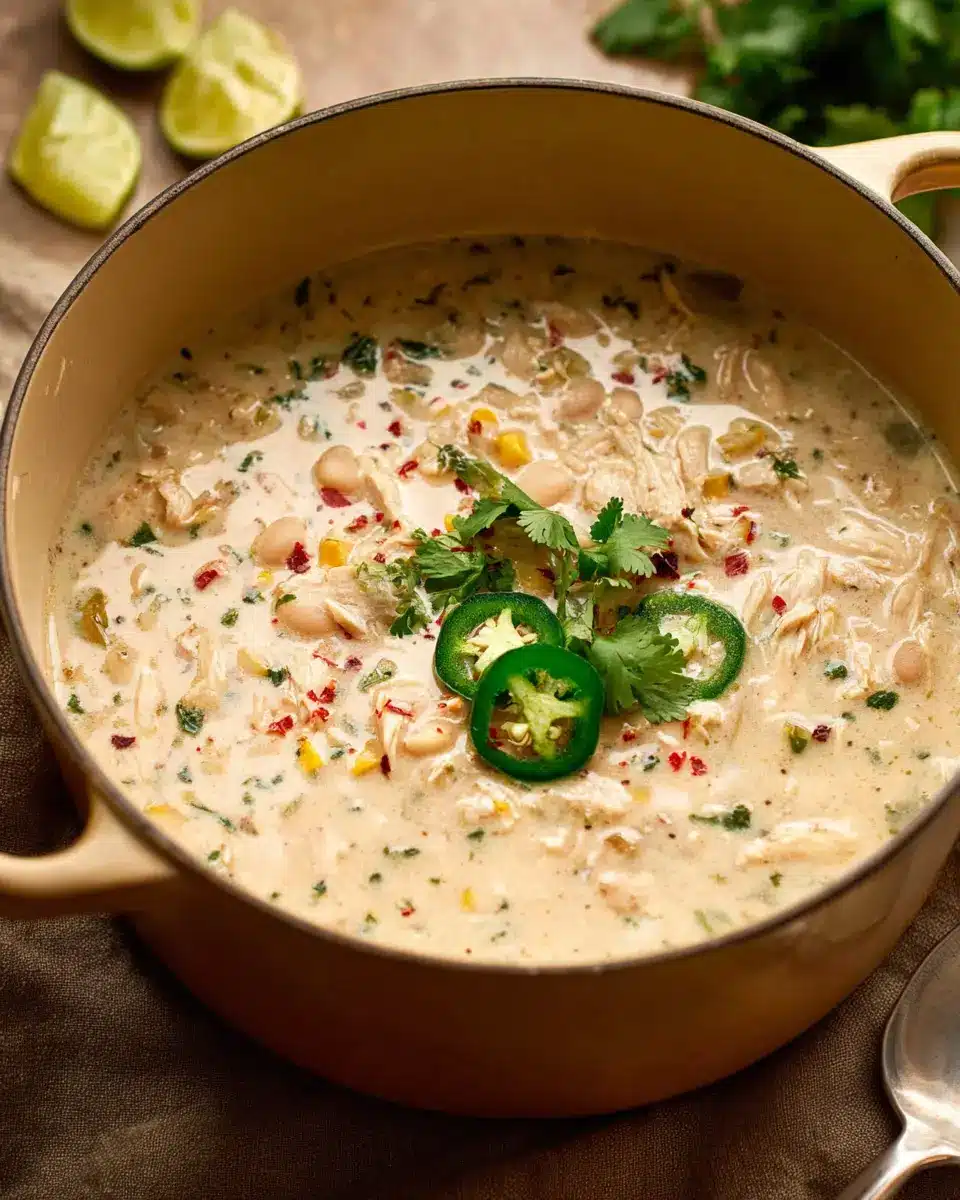Taste your chili and adjust the seasoning as you see fit. Serve it hot, and enjoy the warm, cozy flavors of your easy creamy white chicken chili!