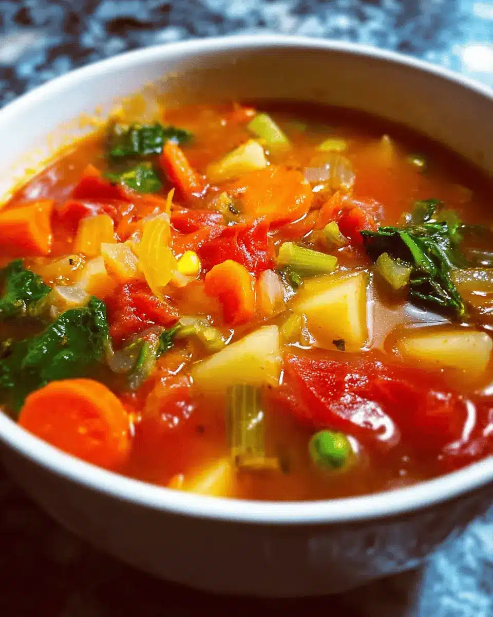 Get imaginative with your presentation! Serve the easy vegetable soup in hollowed-out bread bowls for a rustic touch. Top each bowl with fresh herbs like parsley or basil for a vibrant look. For a twist, try adding a dollop of pesto or a sprinkle of nutritional yeast or vegan cheese to enhance flavor. A squeeze of fresh lemon juice or drizzle of olive oil right before serving can also make a delightful difference.