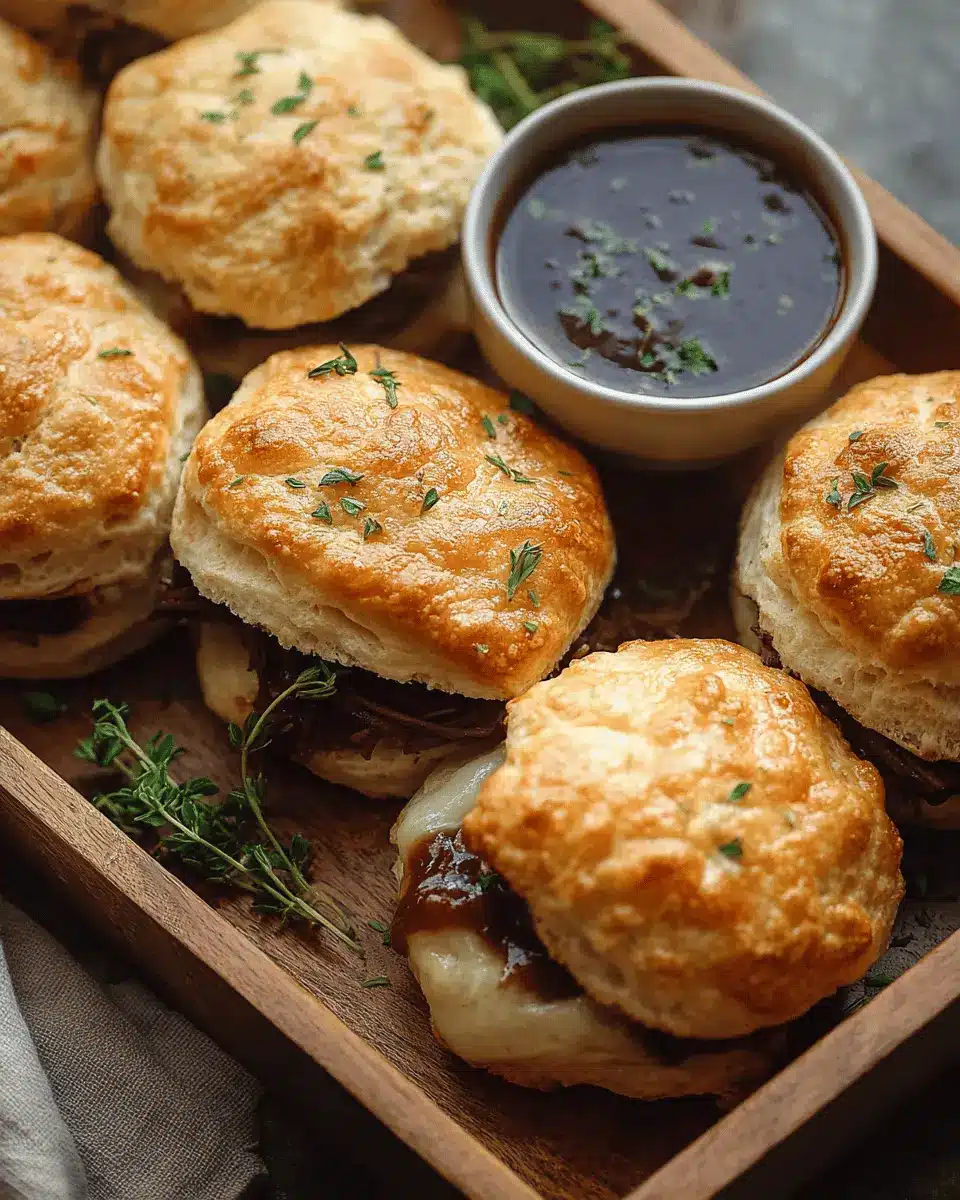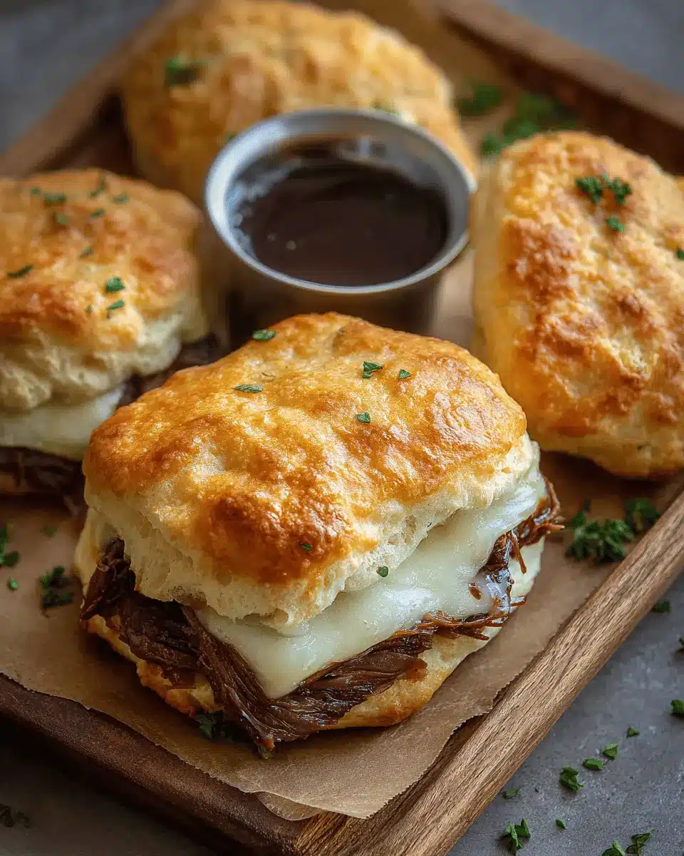 French Dip Biscuits are a delightful fusion of flavors that are sure to impress at any dinner table. With the savory goodness of roast beef, melted provolone, and sweet caramelized onions, every bite is a warm hug. Try them out and enjoy dipping into rich beef consomme for a satisfying meal!