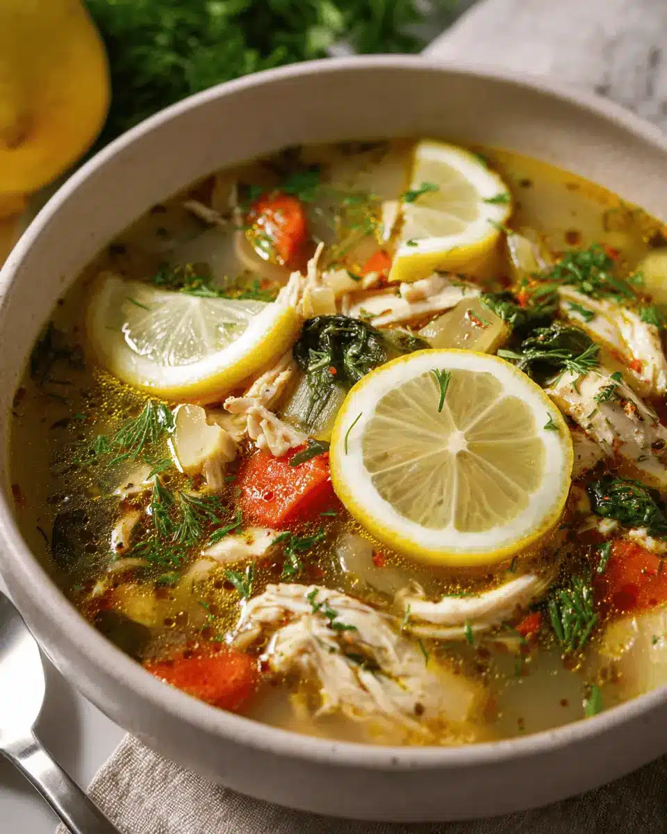 Presentation can elevate any dish, and your Greek Lemon Chicken Soup is no exception. Top each bowl with freshly chopped dill for a pop of color and flavor. A sprinkle of lemon zest can add an extra zing, while sliced lemon wedges offer a touch of brightness. For a creamier finish, you might want to drizzle a little Greek yogurt on top. These garnishes not only enhance the look but also deepen the soup's delightful flavors.