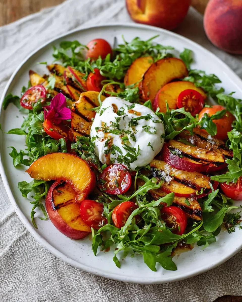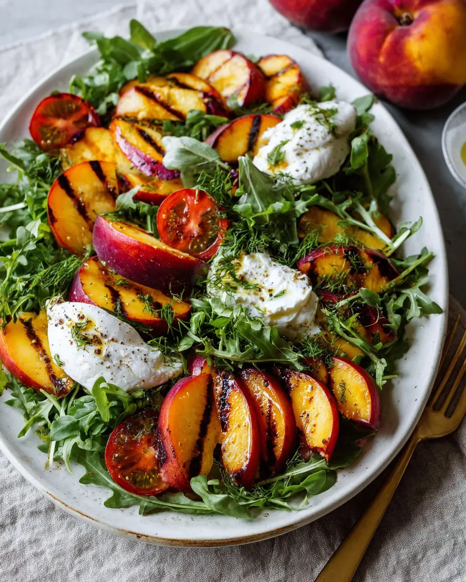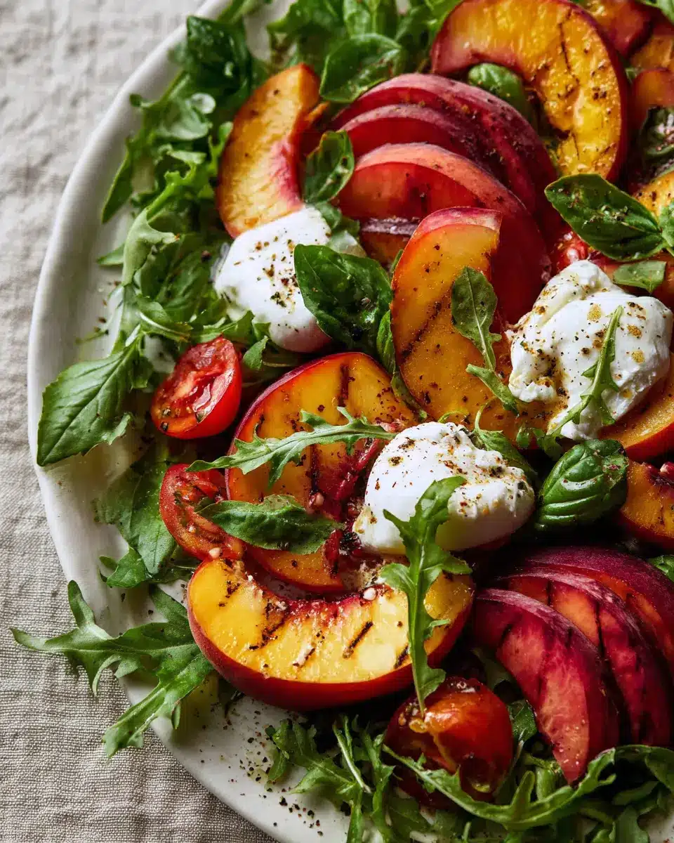 To make the Grilled Nectarine Salad With Burrata a perfect meal, consider pairing it with some grilled chicken breast or succulent turkey bacon. These protein options enhance the flavors and provide a satisfying main course. Alternatively, serve with a crusty baguette or a side of quinoa for a wholesome touch. If you're feeling adventurous, try a refreshing iced herbal tea or homemade lemonade to complement the summer vibes!