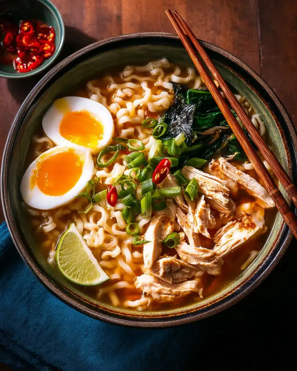 To elevate your homemade chicken ramen, consider adjusting the seasoning to your taste. Adding a pinch of chili flakes can introduce a delightful warmth, while a dash of sesame oil brings a nutty essence. For a deeper umami flavor, experiment with a few drops of fish sauce or a splash of kombu stock. Remember to taste along the way—each ingredient adds its own magic!
