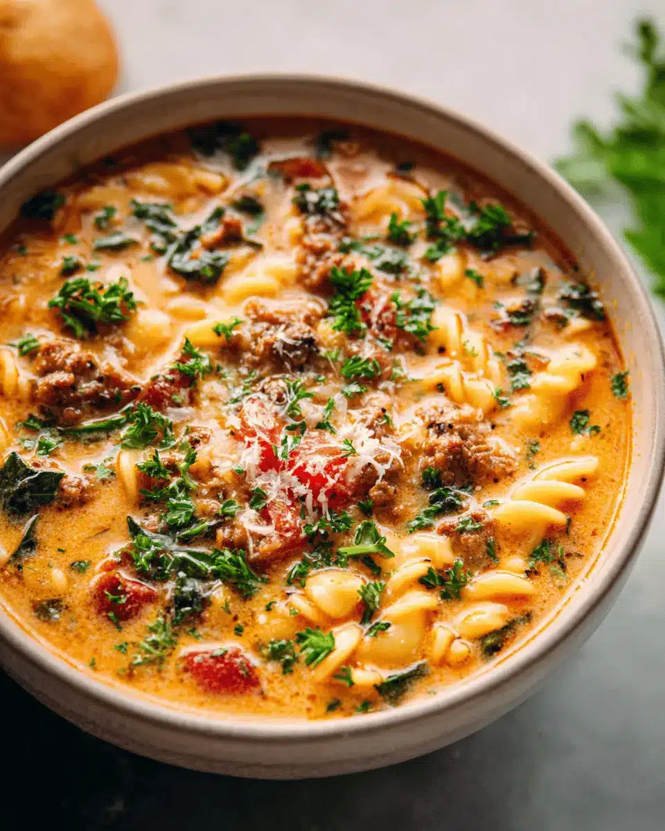 The Italian Sausage Pasta Soup is a heartwarming dish that’s perfect for weeknight dinners or cozy gatherings. Its creamy texture, robust flavors, and nutritious ingredients will delight any palate. Plus, it’s quick to whip up, making it a go-to recipe for busy professionals. Enjoy this delicious soup warm with crusty bread!