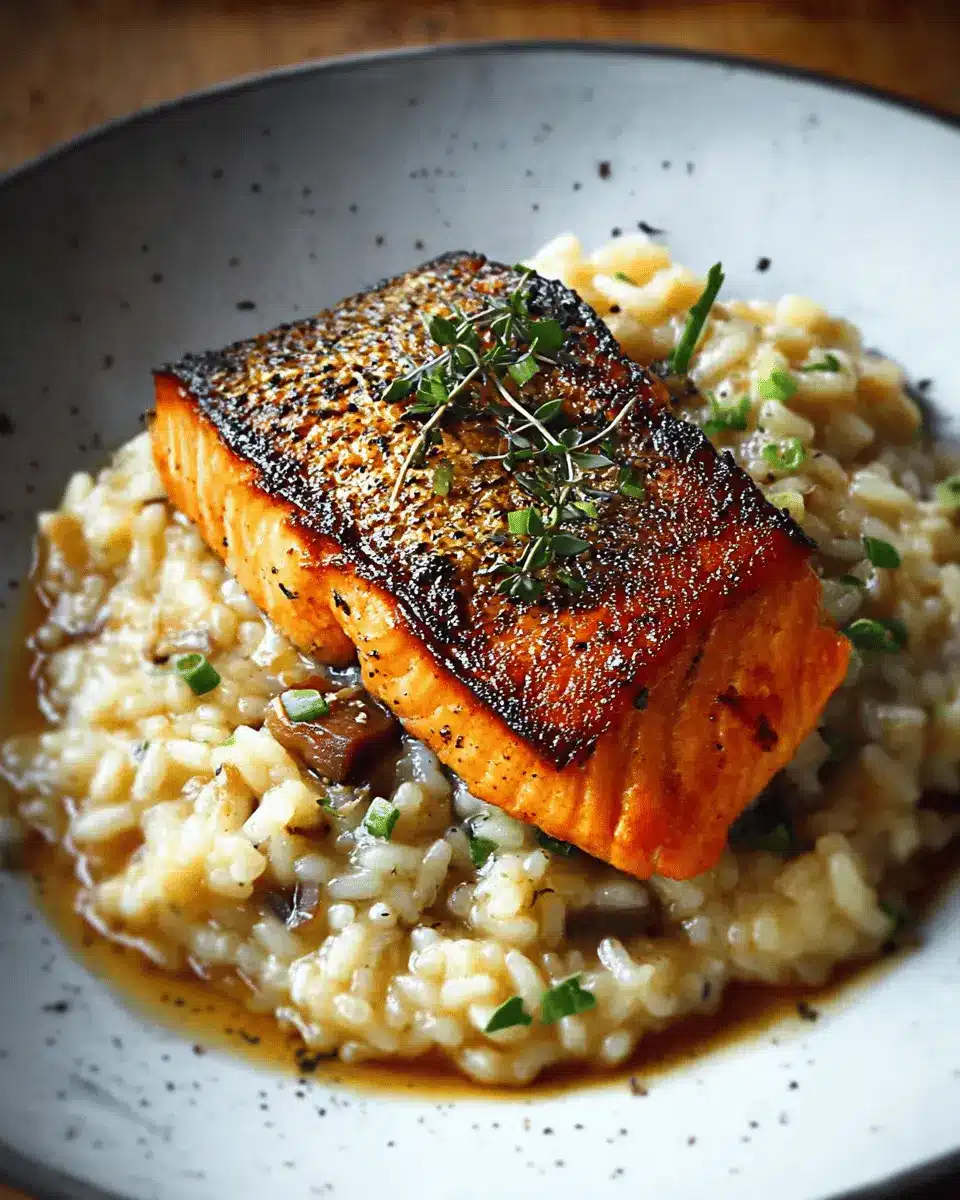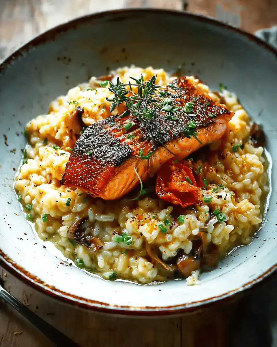 If you're not a fan of salmon or want to try something different, you can substitute it with skinless seared tuna or even tofu for a plant-based option. Both alternatives will complement the risotto beautifully!