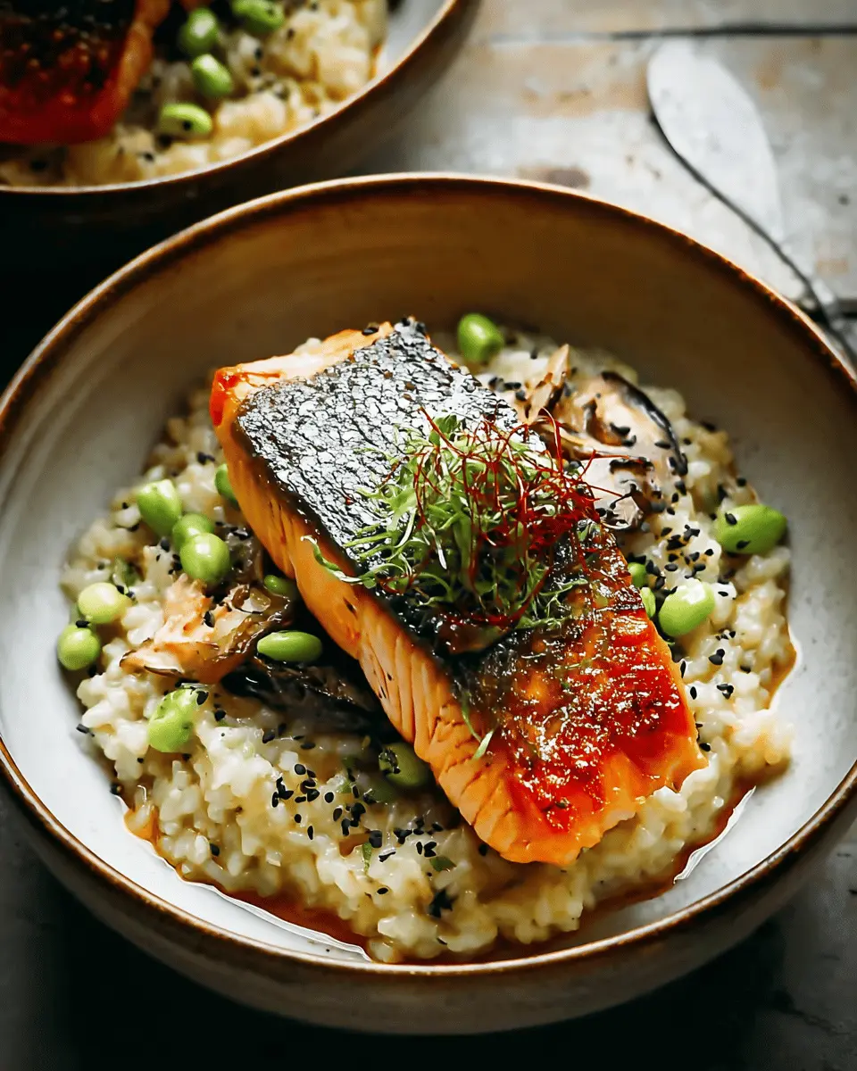 In summary, Japanese Style Risotto with Seared Salmon brings a unique twist to traditional comfort food. Its umami-rich flavors and creamy texture make it the perfect dish for cozy nights. Gather your friends or family, and enjoy this delightful meal together; you won’t be disappointed!