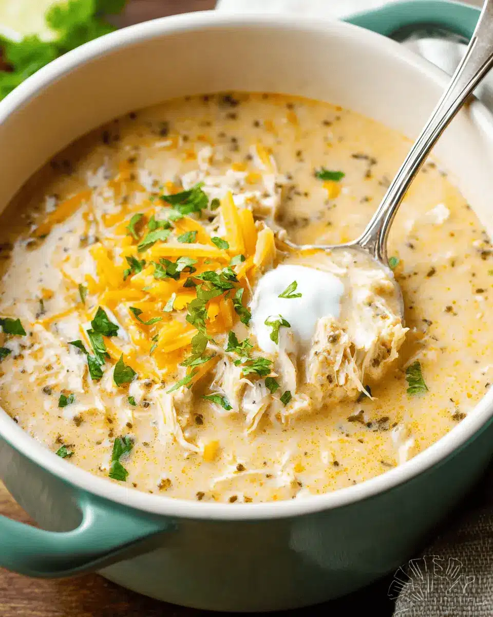 If you’re looking for a meat-free alternative, swap the shredded chicken for zucchini, cauliflower, or chickpeas to retain that hearty texture. Use vegetable broth instead of chicken broth, and feel free to toss in your favorite beans, like black beans or kidney beans, for added protein. To keep the flavors bold, add a generous splash of lime juice just before serving. This version maintains the creamy richness while being completely plant-based!