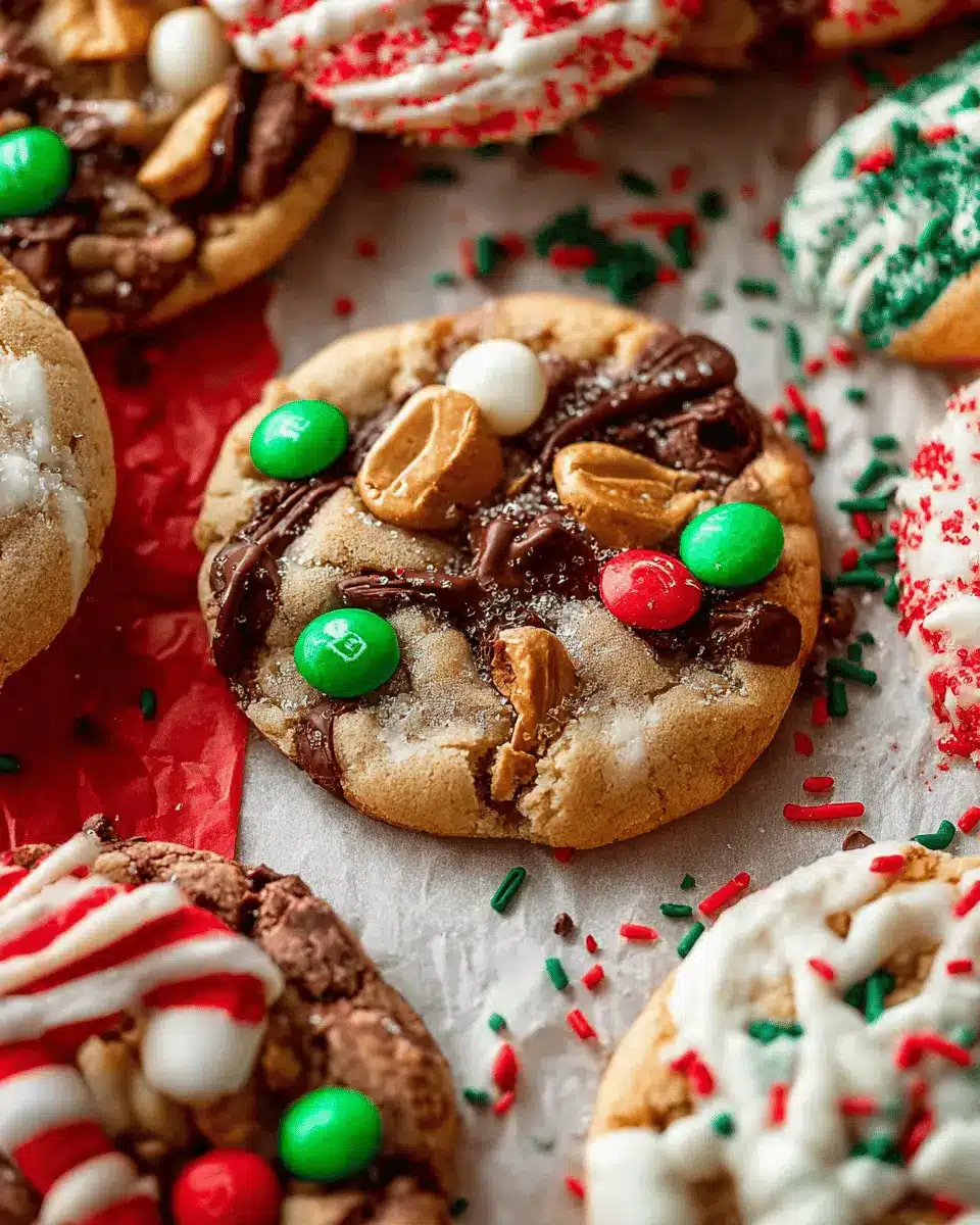 Have you ever found yourself pondering over what to do with that half-empty bag of chocolate chips or those leftover sprinkles from last year? Kitchen Sink Christmas Cookies are the perfect solution! Think of these delightful treats as a magical fusion of all your favorite cookie ingredients. They feature a base similar to classic chocolate chip cookies but allow for endless creativity with a mix of special additions.