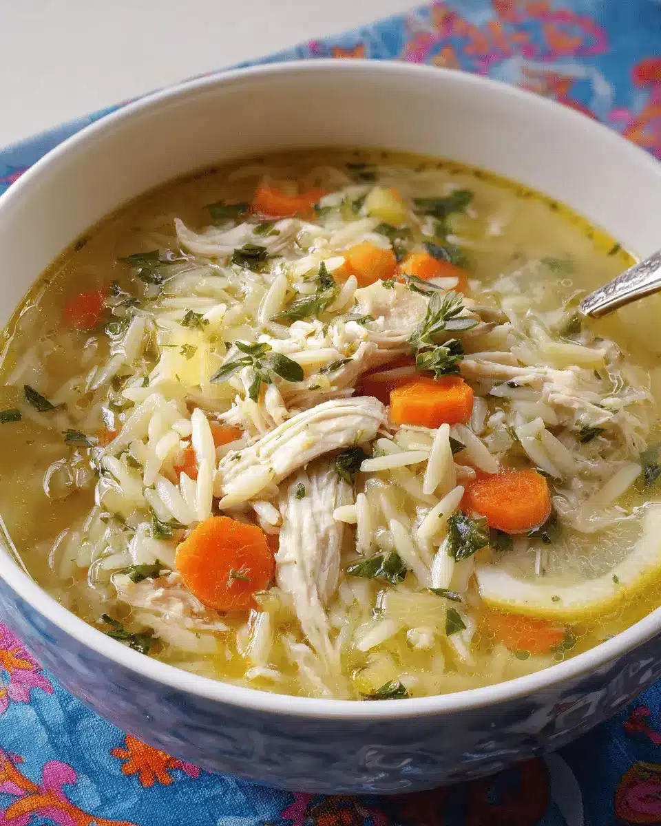 Elevate your dining experience by serving the lemon chicken-orzo soup in beautiful, shallow bowls. Garnish each bowl with freshly chopped dill and a sprinkle of zest for a pop of color. You could also use crispy, thinly sliced turkey bacon sprinkled on top for additional crunch—a great way to surprise your guests! Accompany your soup with a refreshing iced tea or sparkling apple cider to round out the meal perfectly. For inspiration, check out ideas for creative garnishes on cooking blogs like Serious Eats.
