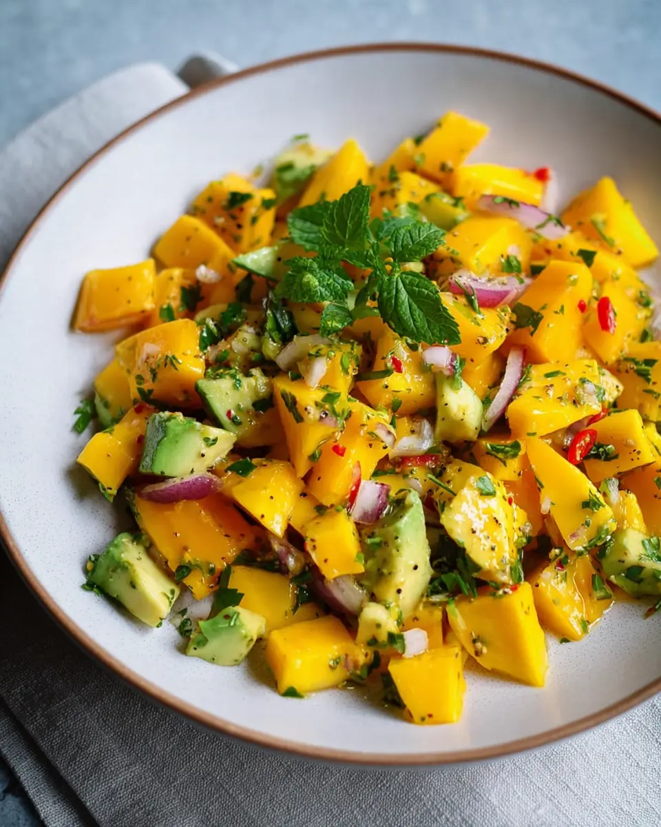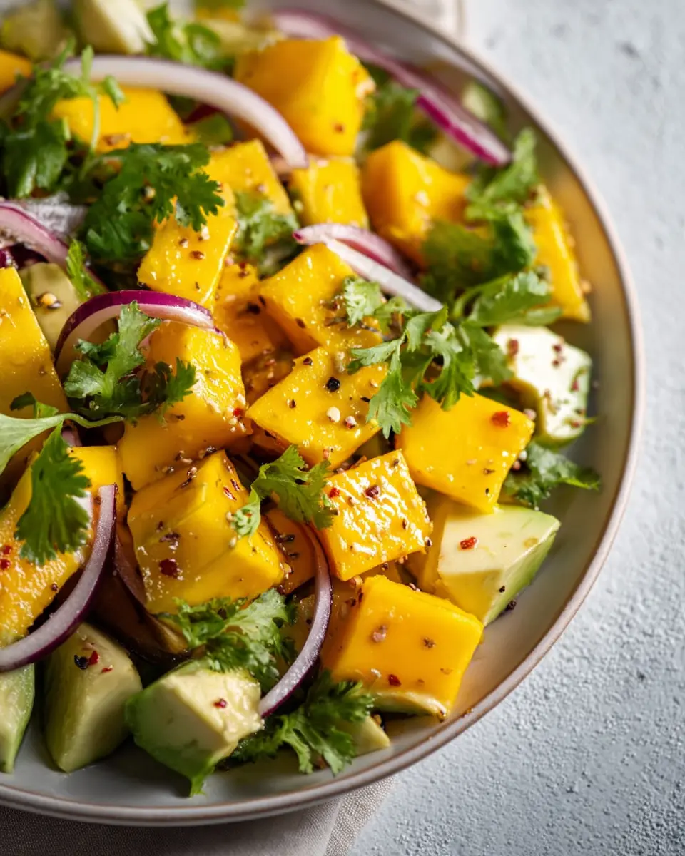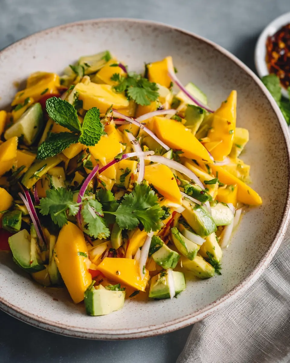 Looking to elevate your mango salad experience? Try pairing it with grilled chicken or fish. The refreshing sweetness of the mango balances beautifully with the smoky flavors from the grill. Try marinating your chicken or fish in lime juice and cumin to echo the dressing's flavors—it's a mouthwatering combination that your taste buds will definitely thank you for!