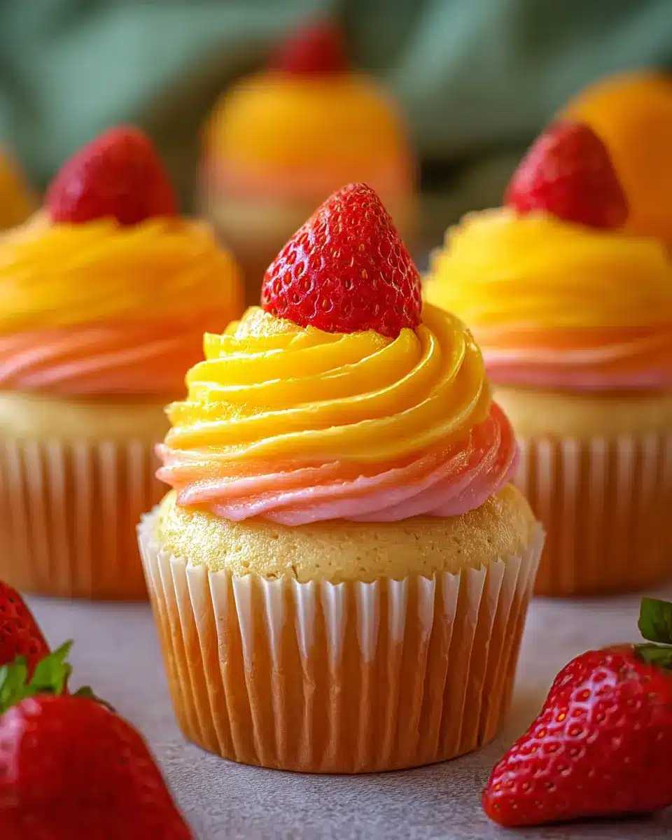 Serving suggestions for Mango Strawberry Sunset Cupcakes