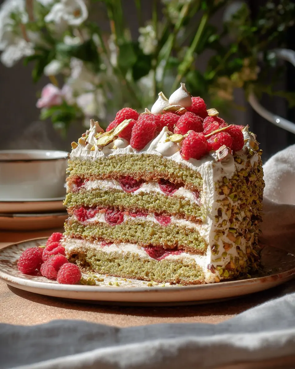 In conclusion, the pistachio raspberry cake is a delightful blend of flavors and textures that makes for a perfect dessert. Its moist pistachio base paired with tart raspberry jam and creamy mascarpone is sure to impress. Give it a try, and savor the sweet success of your baking adventure!