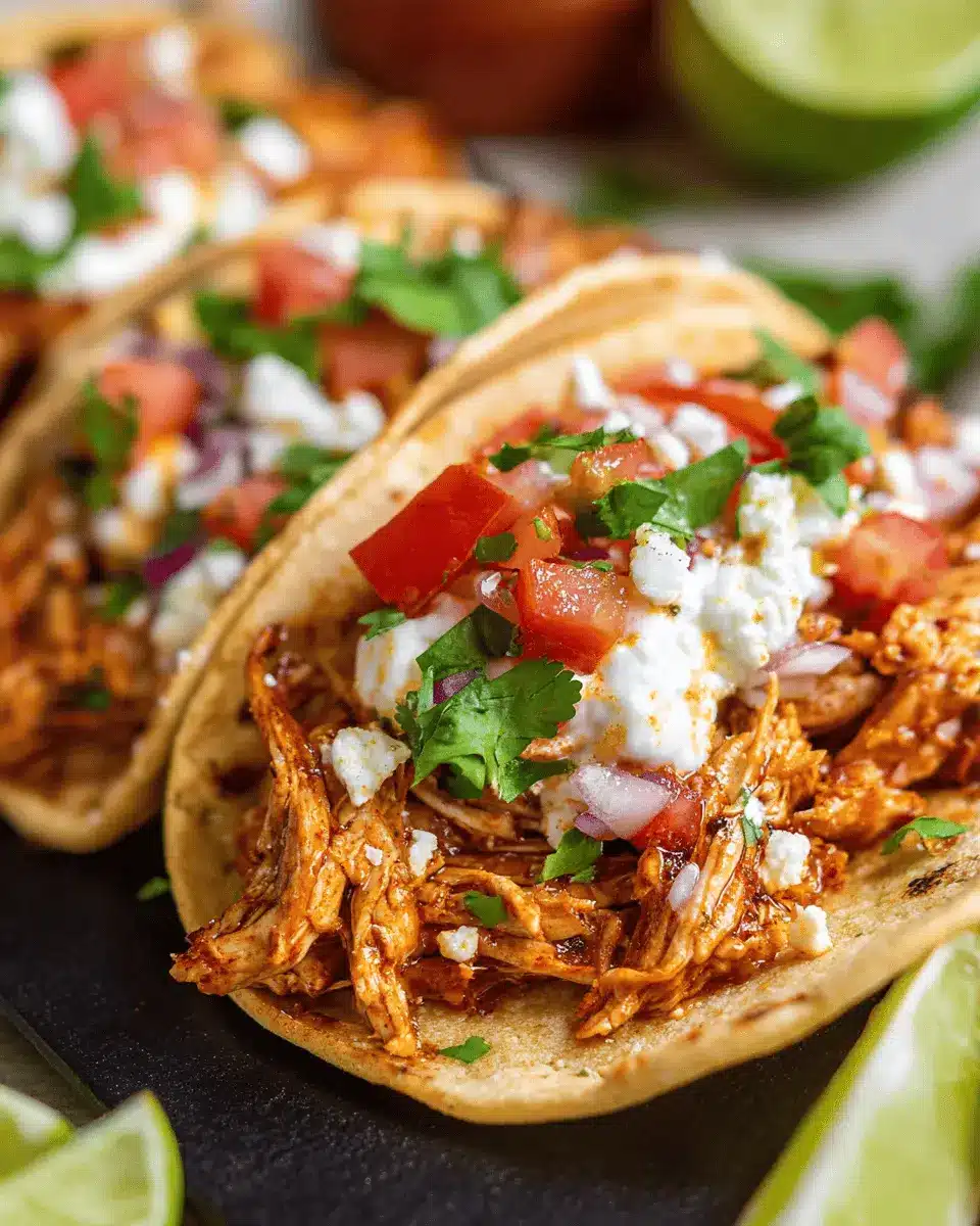 Elevate your shredded chicken tacos by getting playful with the presentation! Try using mini corn tortillas for delightful bite-sized versions, making them perfect for guests. Use colorful toppings like purple cabbage, avocado slices, or fresh cilantro to add a pop of color. You could even serve them in taco holders for a fun, restaurant-style experience at home.
