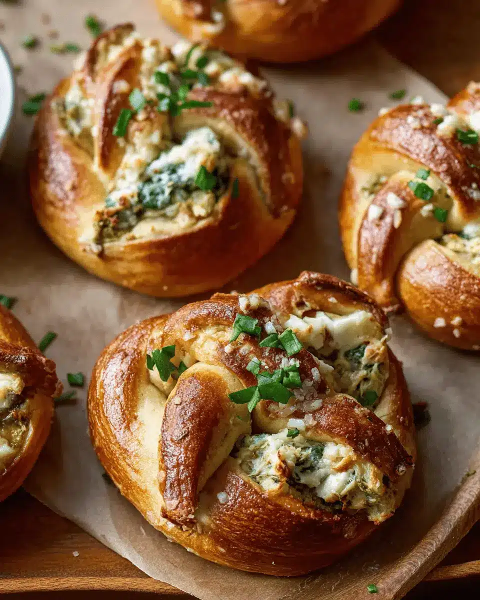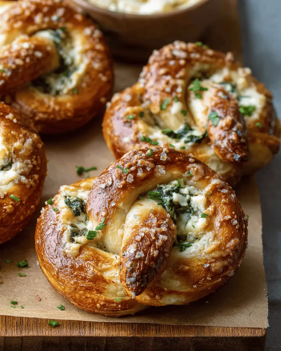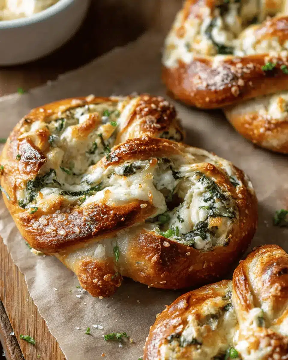In conclusion, Spinach Artichoke Stuffed Pretzels are a delicious blend of textures and flavors, transforming simple ingredients into a delightful snack. Perfect for gatherings or cozy nights in, these pretzels will likely become your new go-to appetizer. Enjoy them fresh from the oven, and don’t forget to share your creation with friends!
