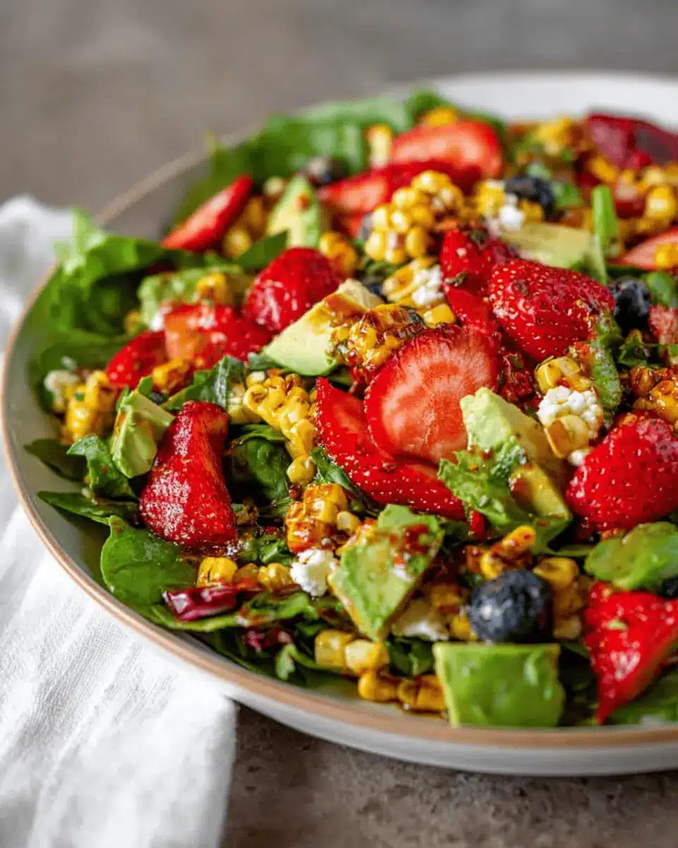 To elevate the flavor of your strawberry avocado corn salad, consider roasting the corn instead of grilling for a sweeter profile, or adding a pinch of smoked paprika to the vinaigrette. Fresh herbs like basil and mint not only add vibrant color but also a refreshing aroma that brightens the dish. A squeeze of fresh lemon juice can also enhance those flavors, making each bite a delightful experience!