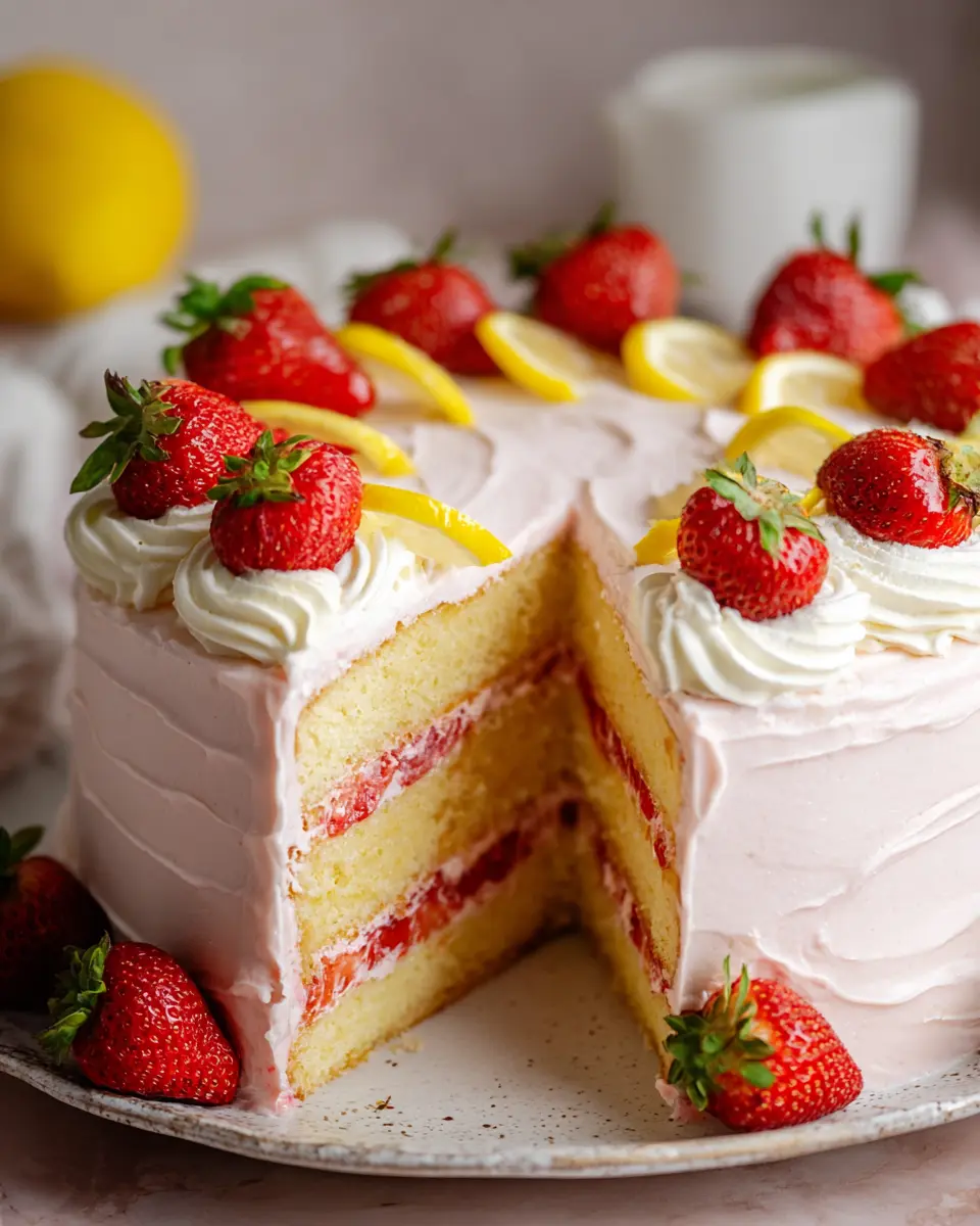 In conclusion, this strawberry lemon cake offers a delightful blend of zesty lemon and sweet strawberry flavors, perfect for any occasion. Its moist layers and creamy buttercream make it a showstopper for gatherings. Try this recipe and enjoy the refreshing taste that celebrates spring and summer moments!