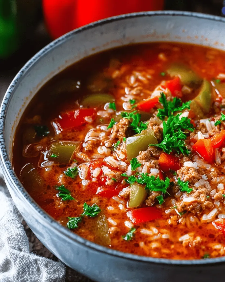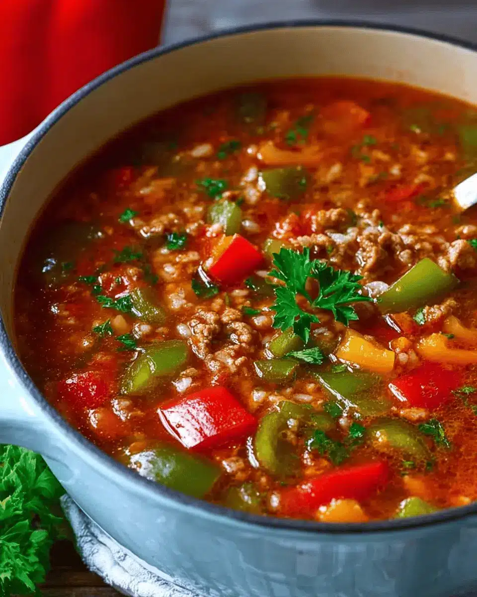 So grab your ingredients, and let’s get cooking! Your perfect bowl of stuffed pepper soup awaits.