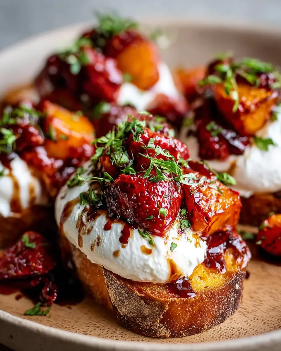 Swicy Roasted Strawberry Burrata with Sweet Potato Crostini
