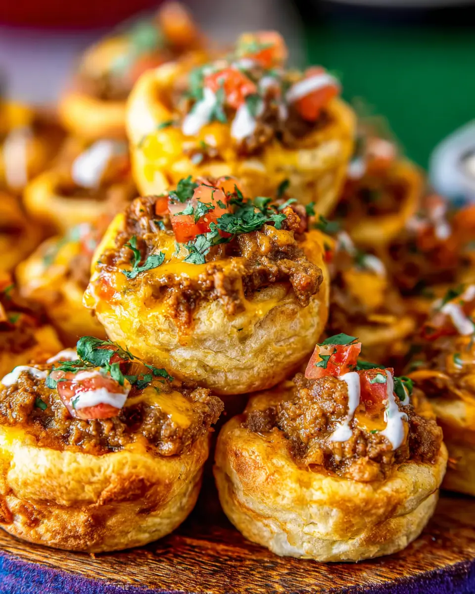 Imagine the rich flavors of ground beef paired with zesty taco seasoning, all enveloped in a fluffy biscuit shell. It's a party in your mouth! With a delightful mix of Rotel tomatoes, creamy ranch dressing, and gooey cheddar cheese, every bite packs a flavorful punch. Plus, these bites are incredibly easy to prepare, giving you more time to enjoy the fun parts of cooking.