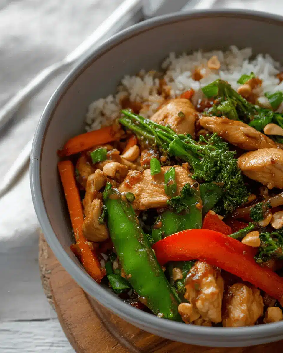 Storing leftovers of the Thai Peanut Chicken Stir Fry is simple! Just place them in an airtight container and refrigerate for up to 4 days. If you want to keep them longer, freeze the stir fry for up to 3 months. When you’re ready to enjoy it again, let it thaw in the refrigerator overnight, then reheat gently in the microwave or on the stovetop with a splash of broth or water to maintain moisture.