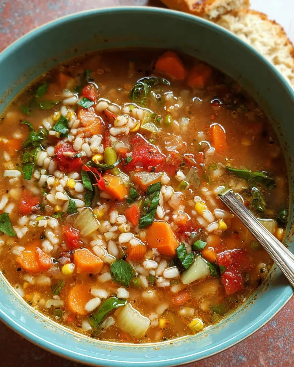 Pair your vegetable barley soup with a crusty whole-grain bread or a side salad drizzled with a light vinaigrette for a well-rounded meal. Consider topping it off with some turkey bacon crumbles for an added crunch and flavor if you like. A freshly baked baguette also complements the soup perfectly, providing a delightful contrast to the soup's heartiness.
