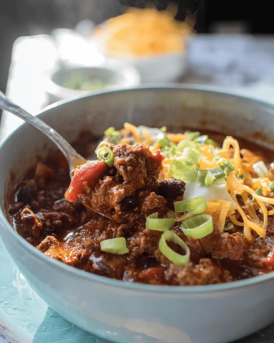 - Avocado Slices: Creamy avocado pairs perfectly with the hearty chili base.